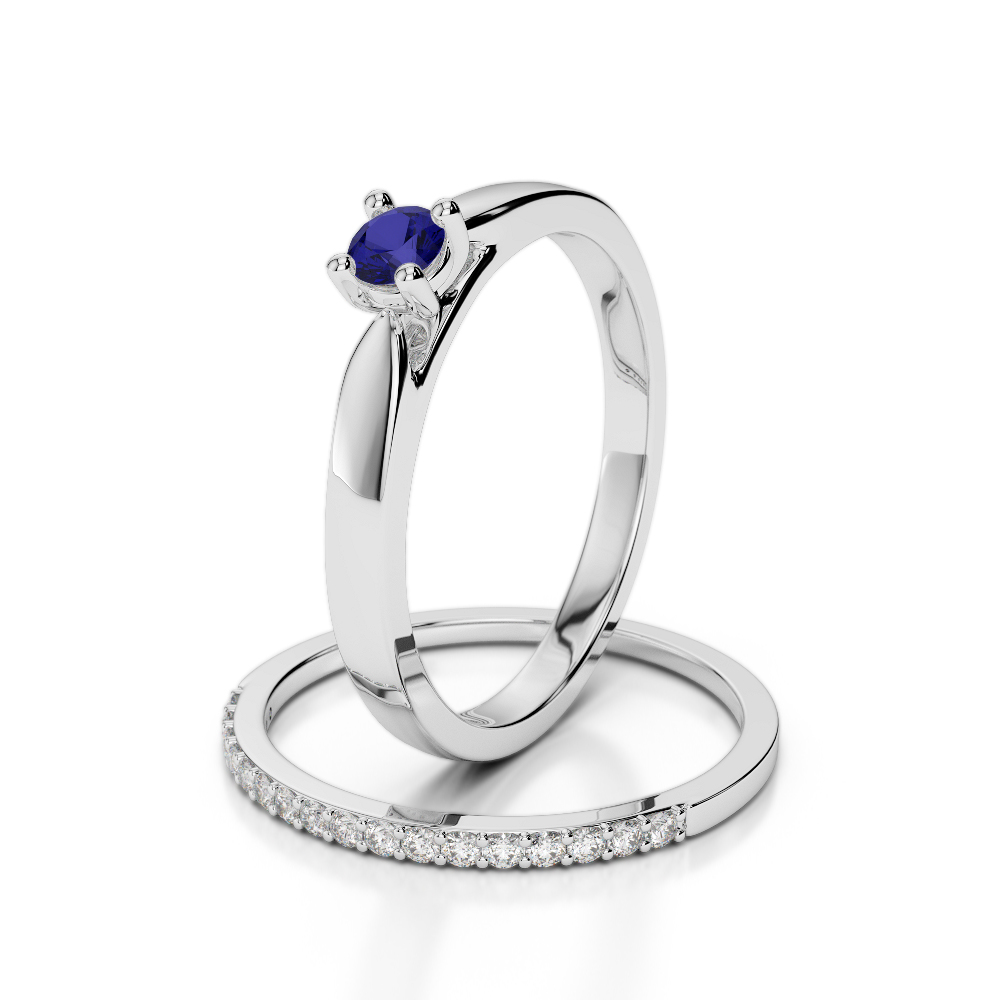 4 Claw Set Solitaire Blue Sapphire & Diamond Bridal Set Ring 0294