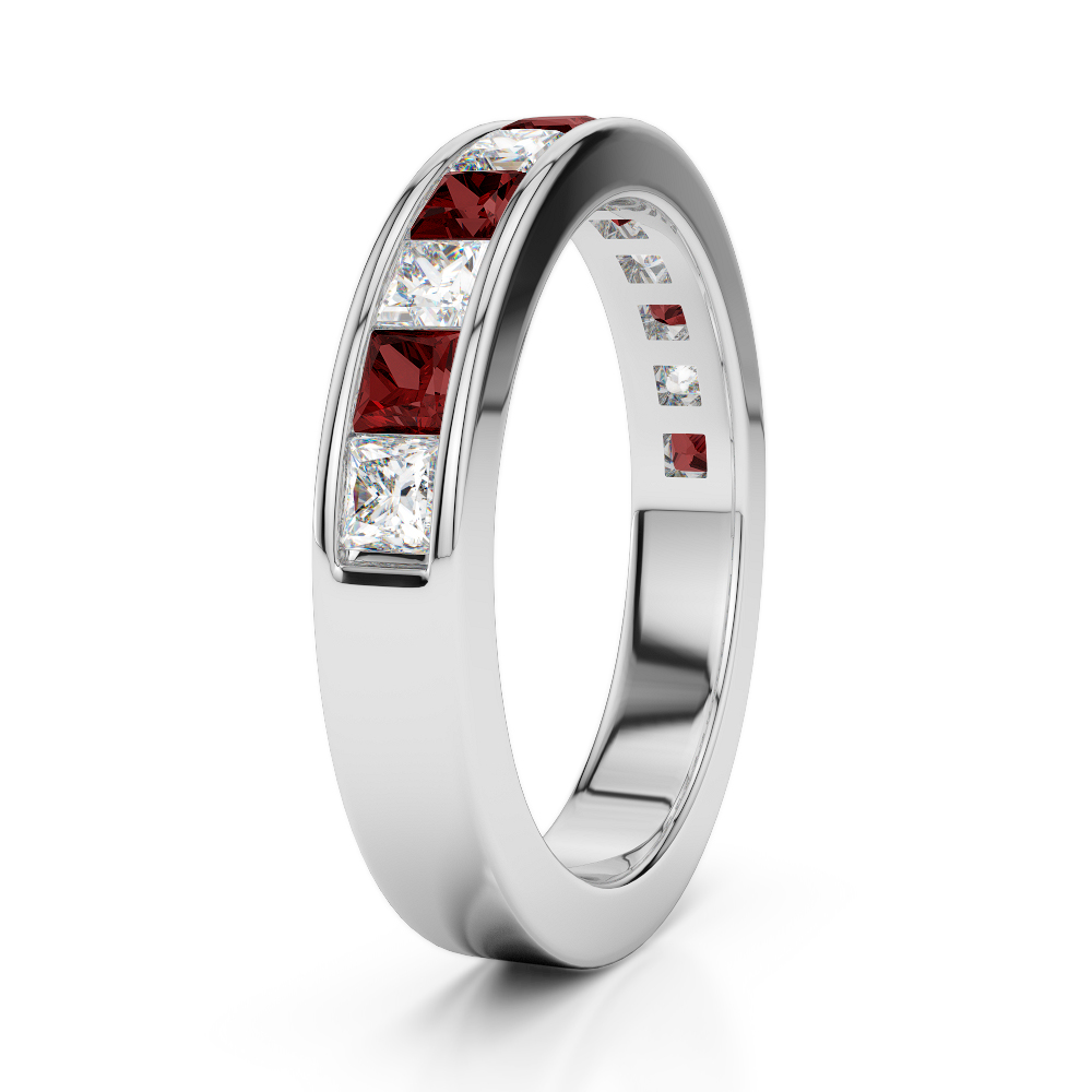 4 MM Princess Cut Garnet Half Eternity Ring With Diamond 0415