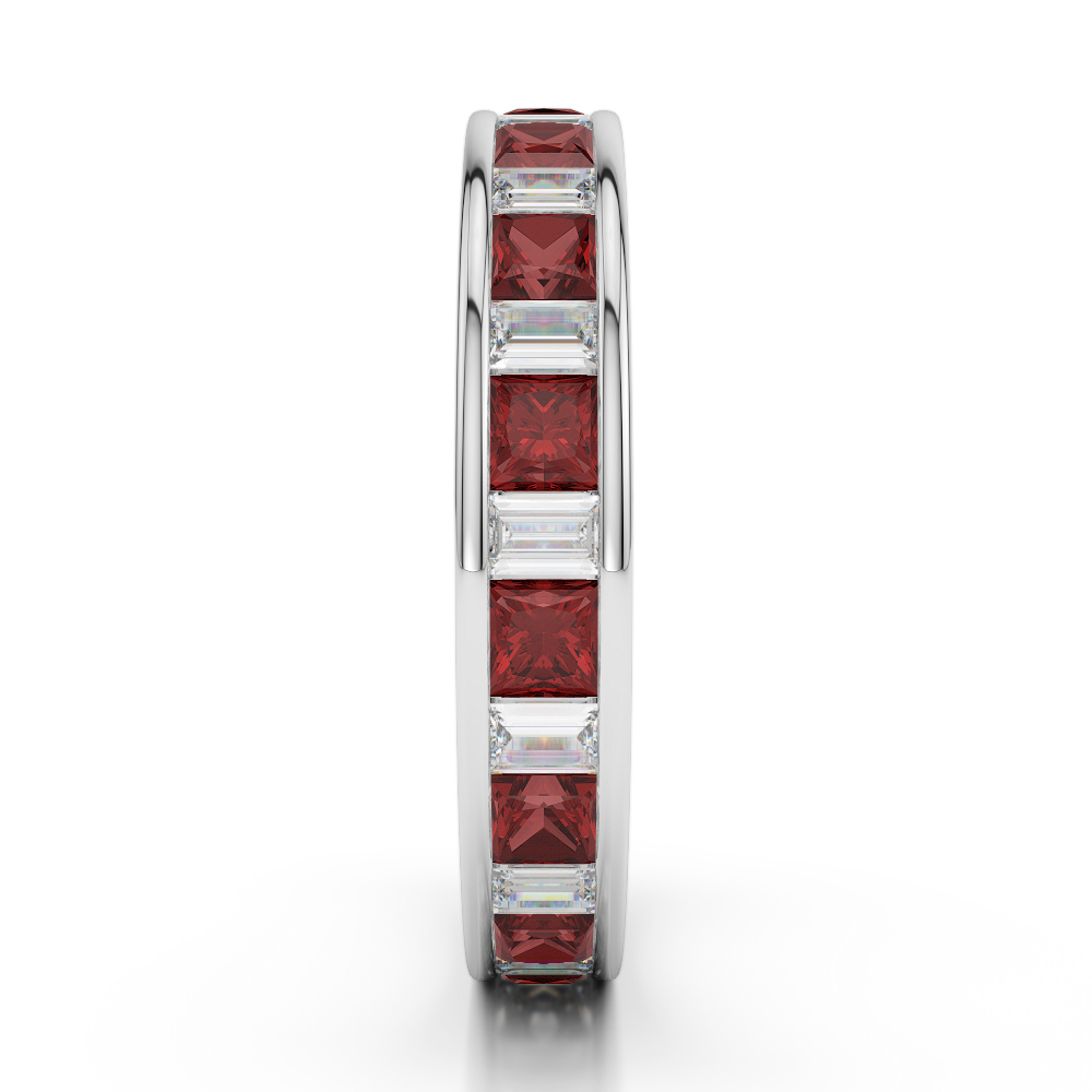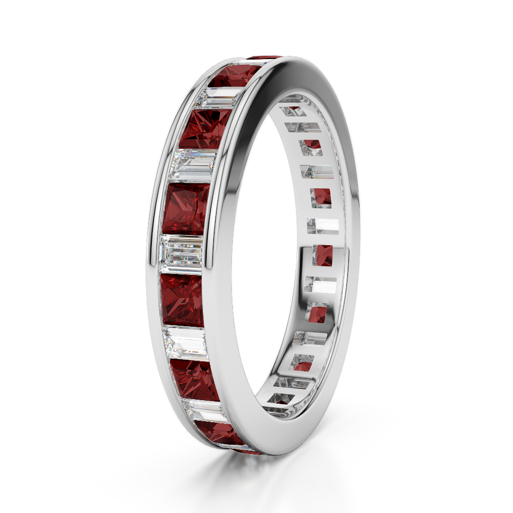 4 MM Princess Garnet & Baguette Cut Diamond Full Eternity Ring 0419