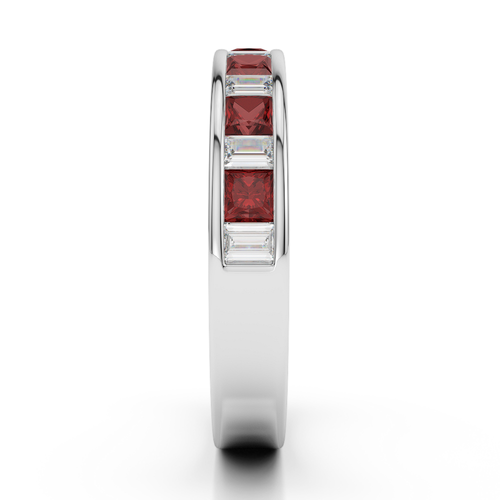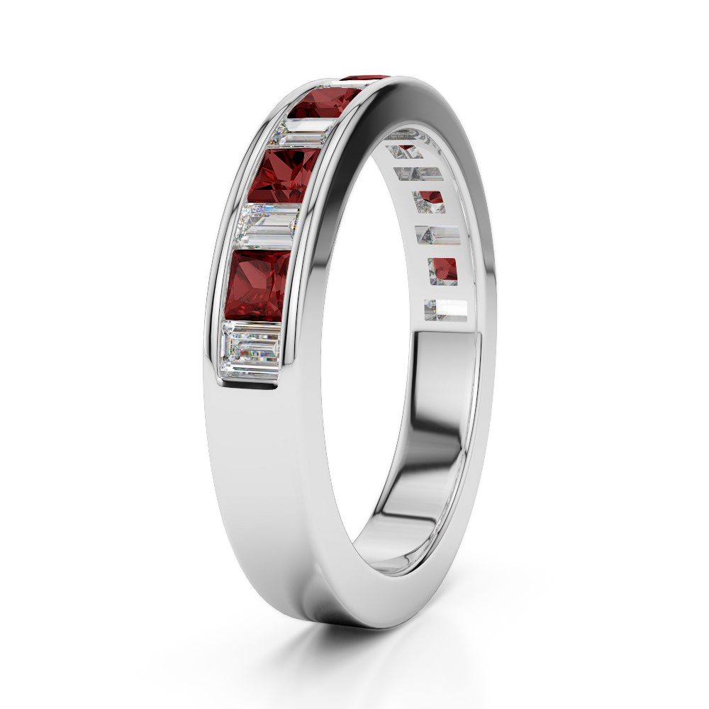 4 MM Princess Garnet & Baguette Cut Diamond Half Eternity Ring 0421