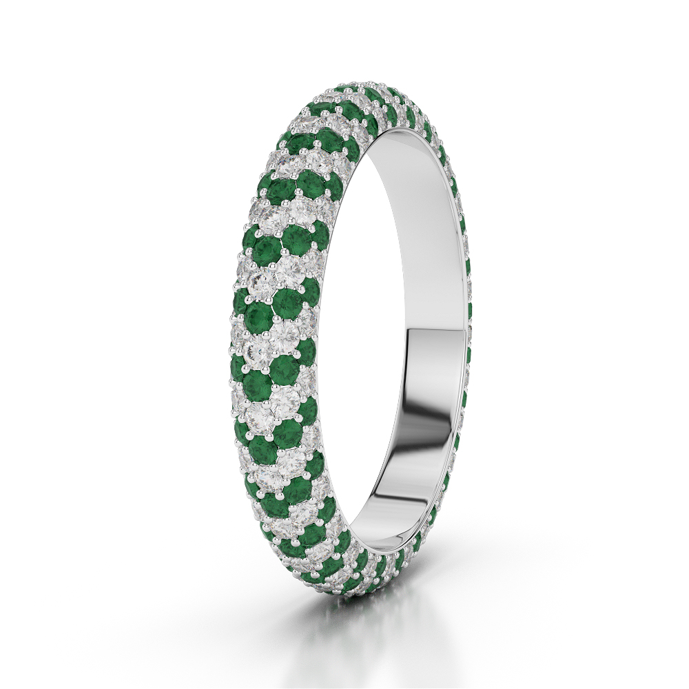 4 MM Prong Set Diamond & Emerald Full Eternity Ring 0394