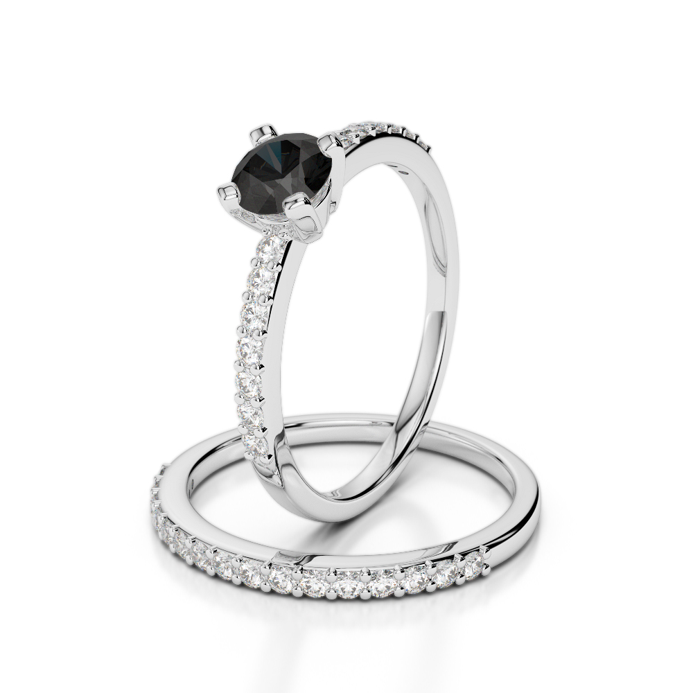 4 Prong Set Black Diamond Bridal Set Ring 0301