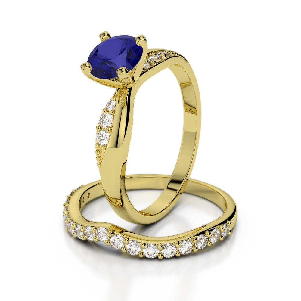4 Prong Set Blue Sapphire & Diamond Bridal Set Ring 0335