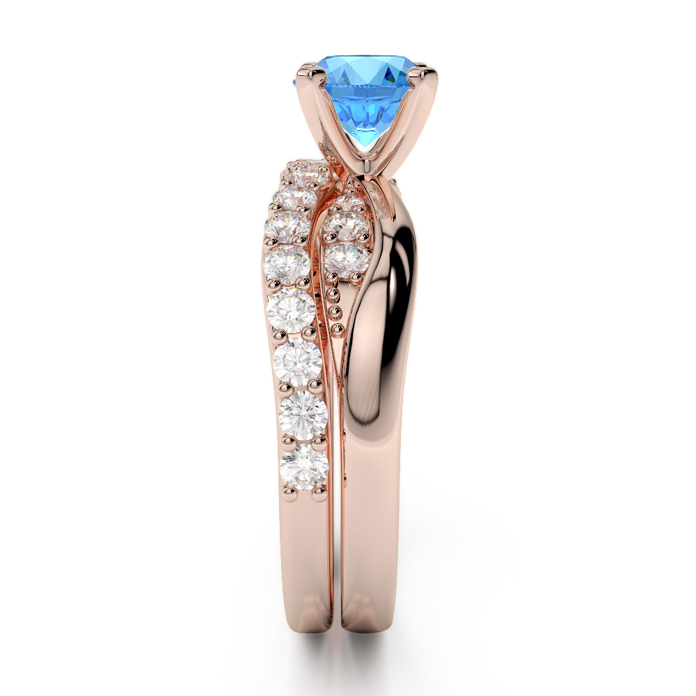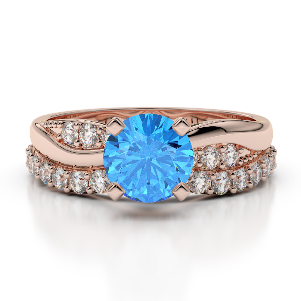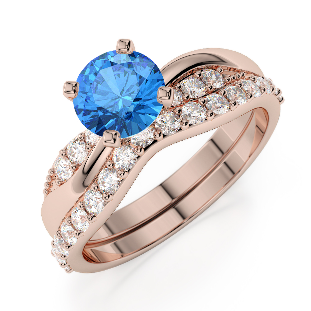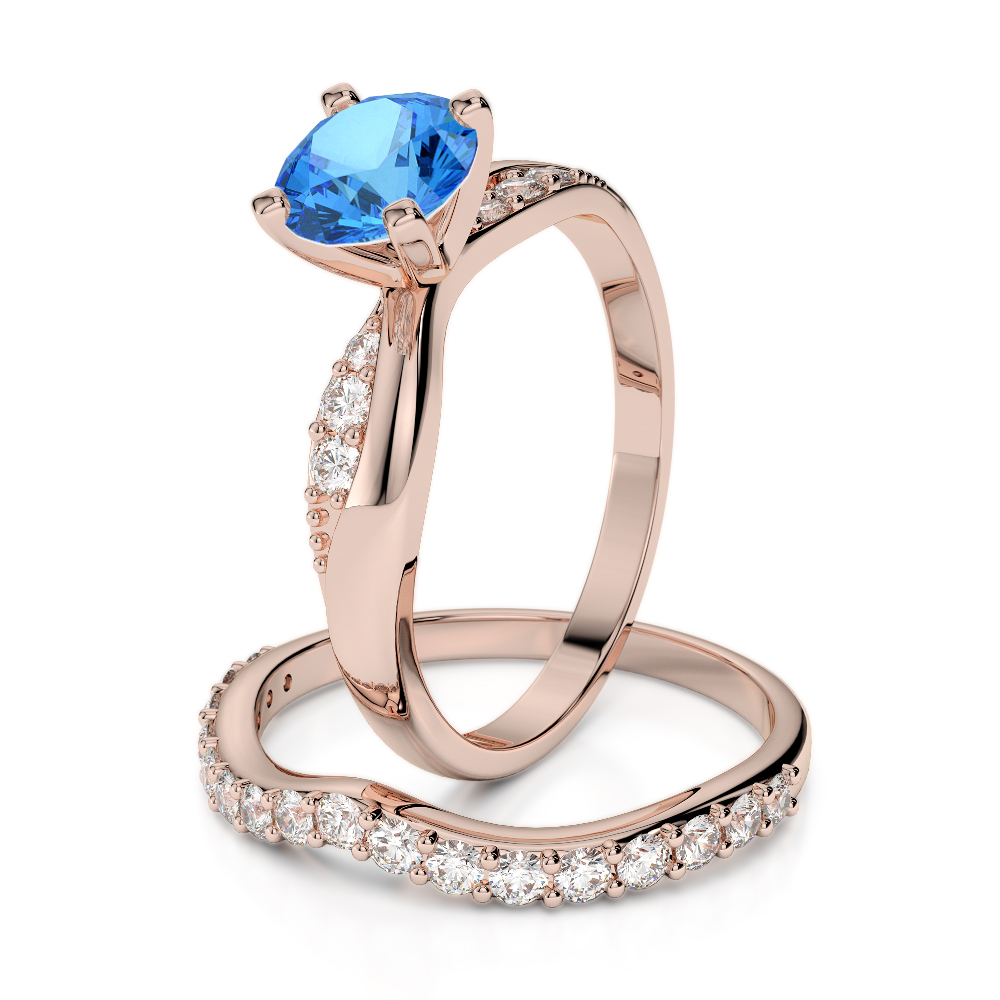 4 Prong Set Blue Topaz & Diamond Bridal Set Ring 0335