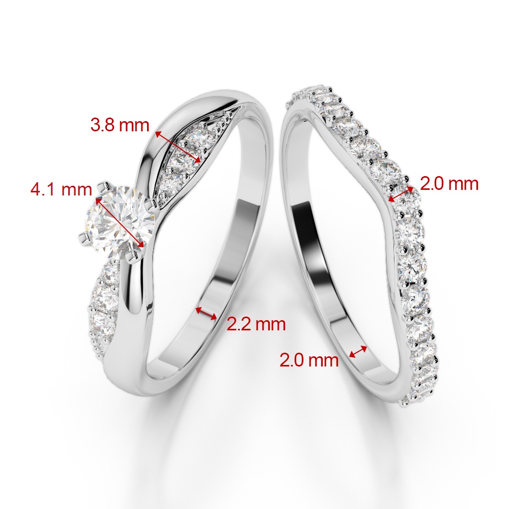 This exquisite diamond bridal set features beautiful wedding rings crafted in elegant gold/platinum, adorned with sparkling diamonds. The rings are designed with a prong setting, ensuring that the diamonds are securely held in place while allowing maximum light to enhance their brilliance. Perfect for symbolising eternal love and commitment, this stunning set is a timeless choice for any couple's special day.