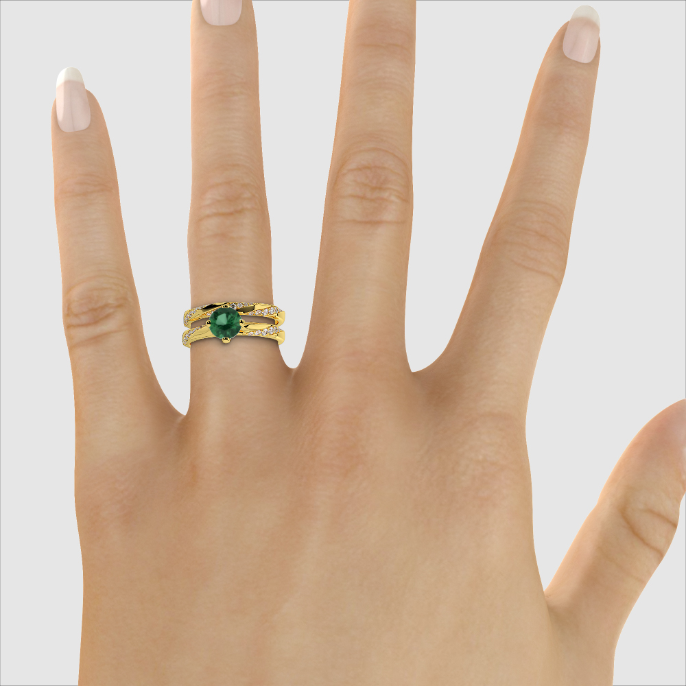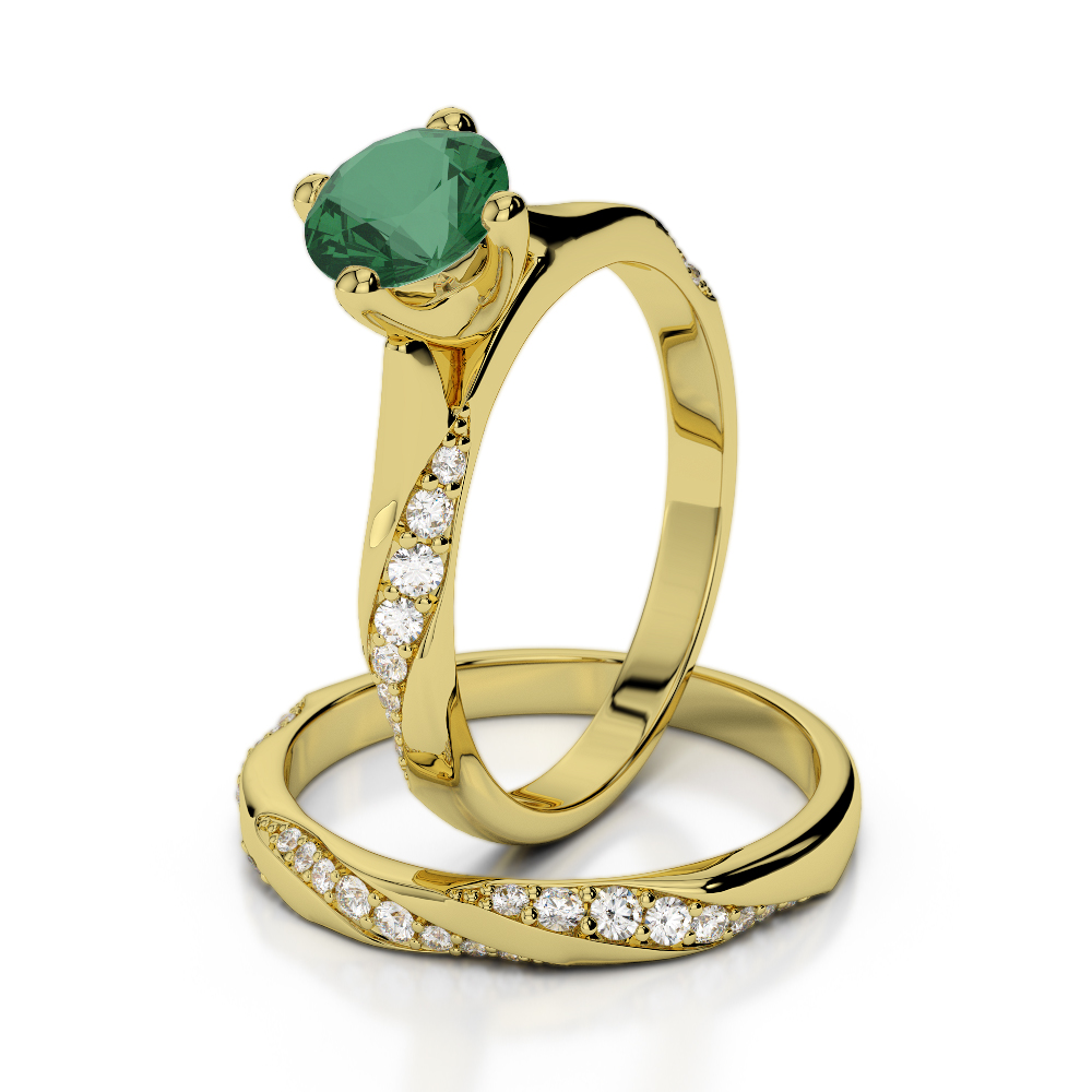 4 Prong Set Emerald Bridal Set Ring With Diamond 0353