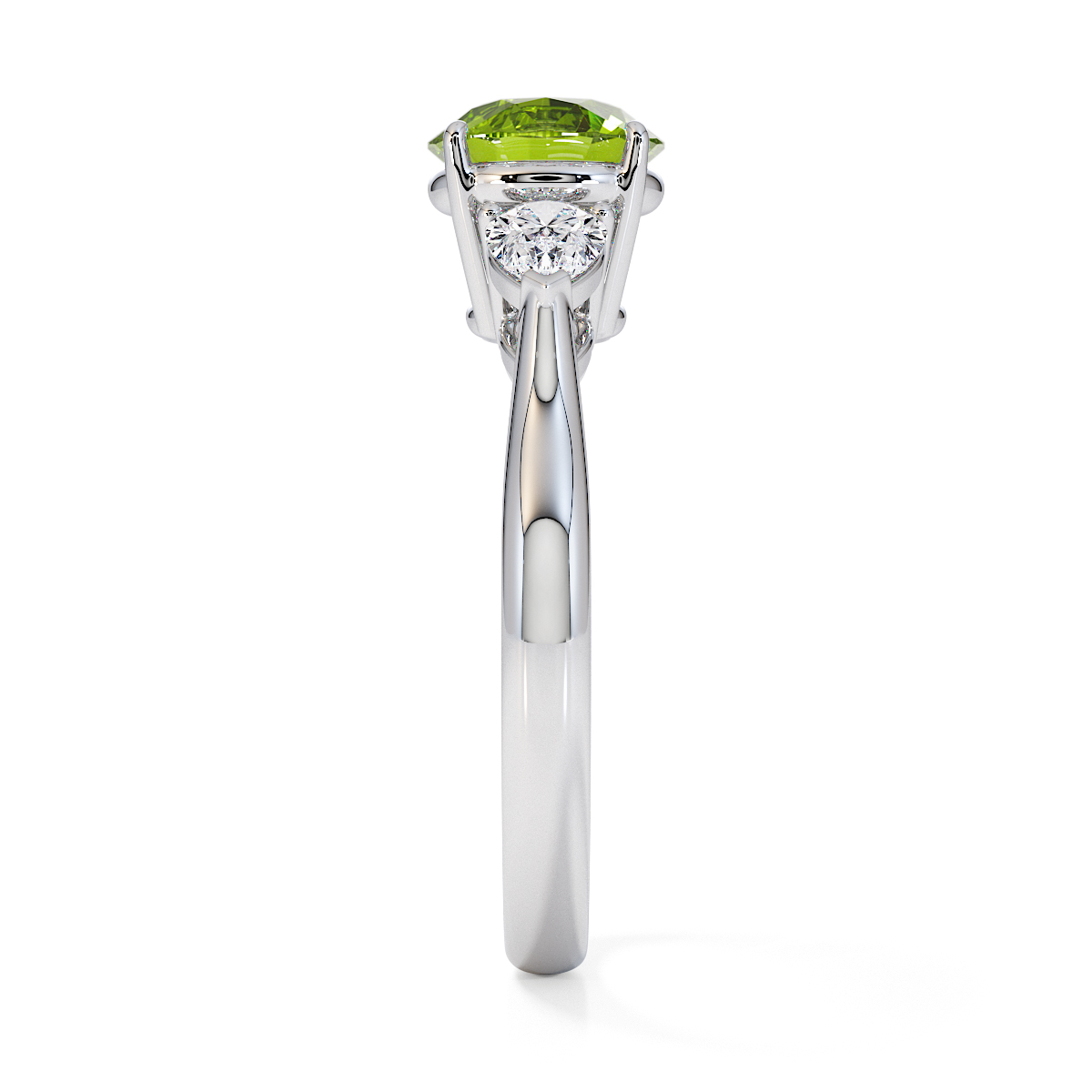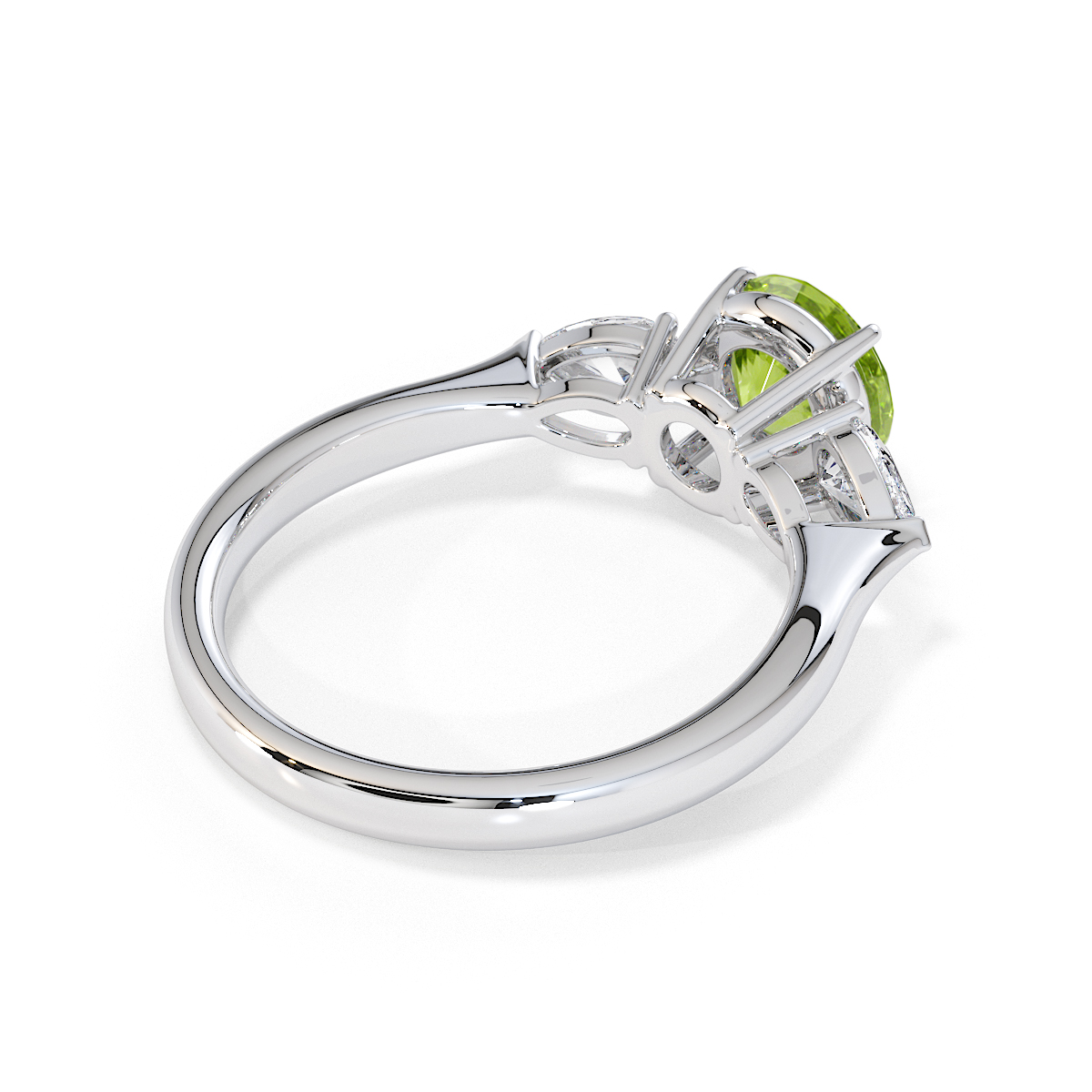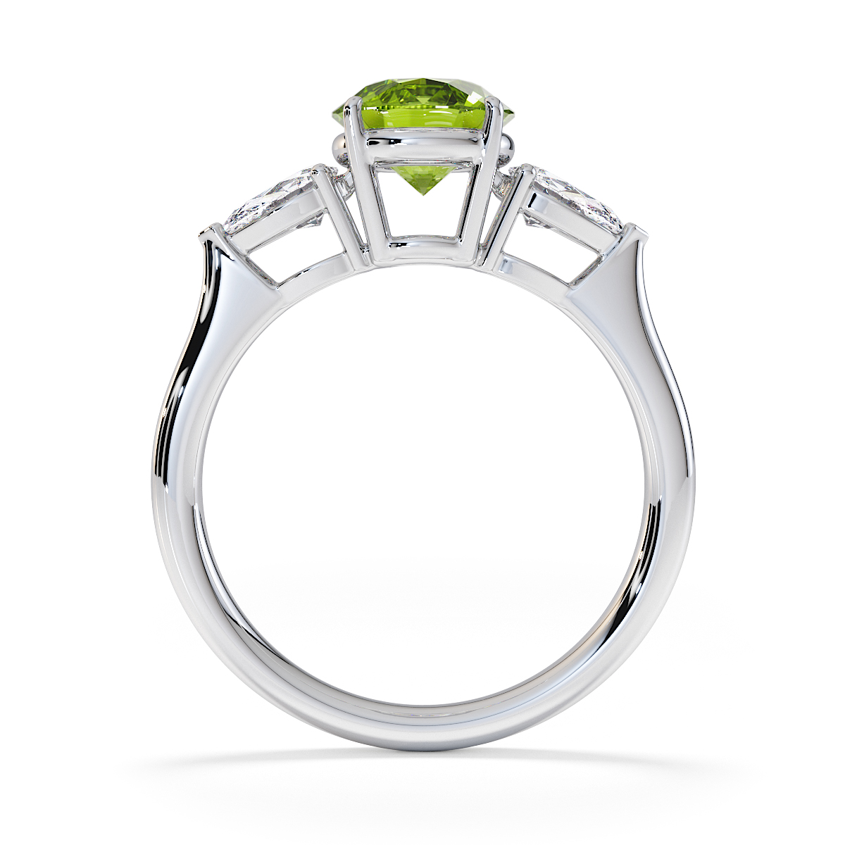 Introducing our exquisite round cut Peridot and Diamond Engagement Ring, adorned with pear-shaped side stones delicately prong-set.
