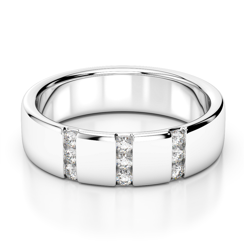 5 MM Channel Set 9 Stone Diamond Mens Wedding Ring 0094