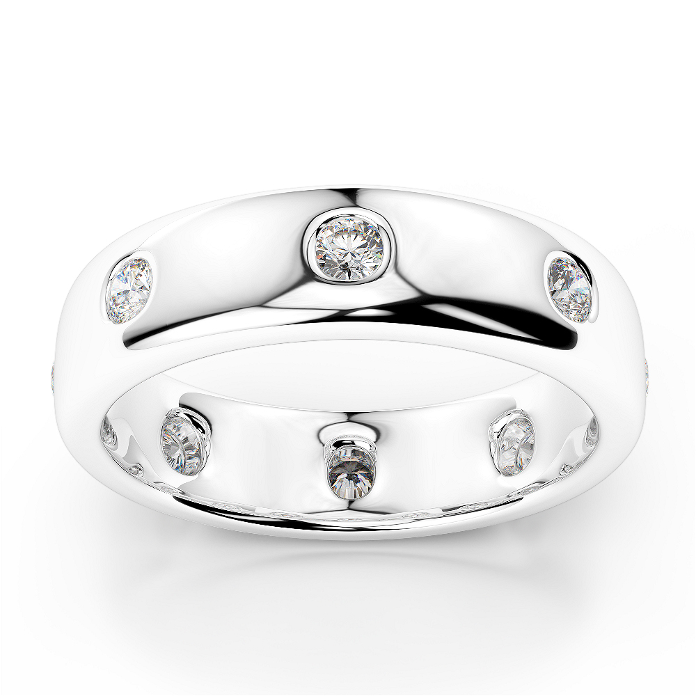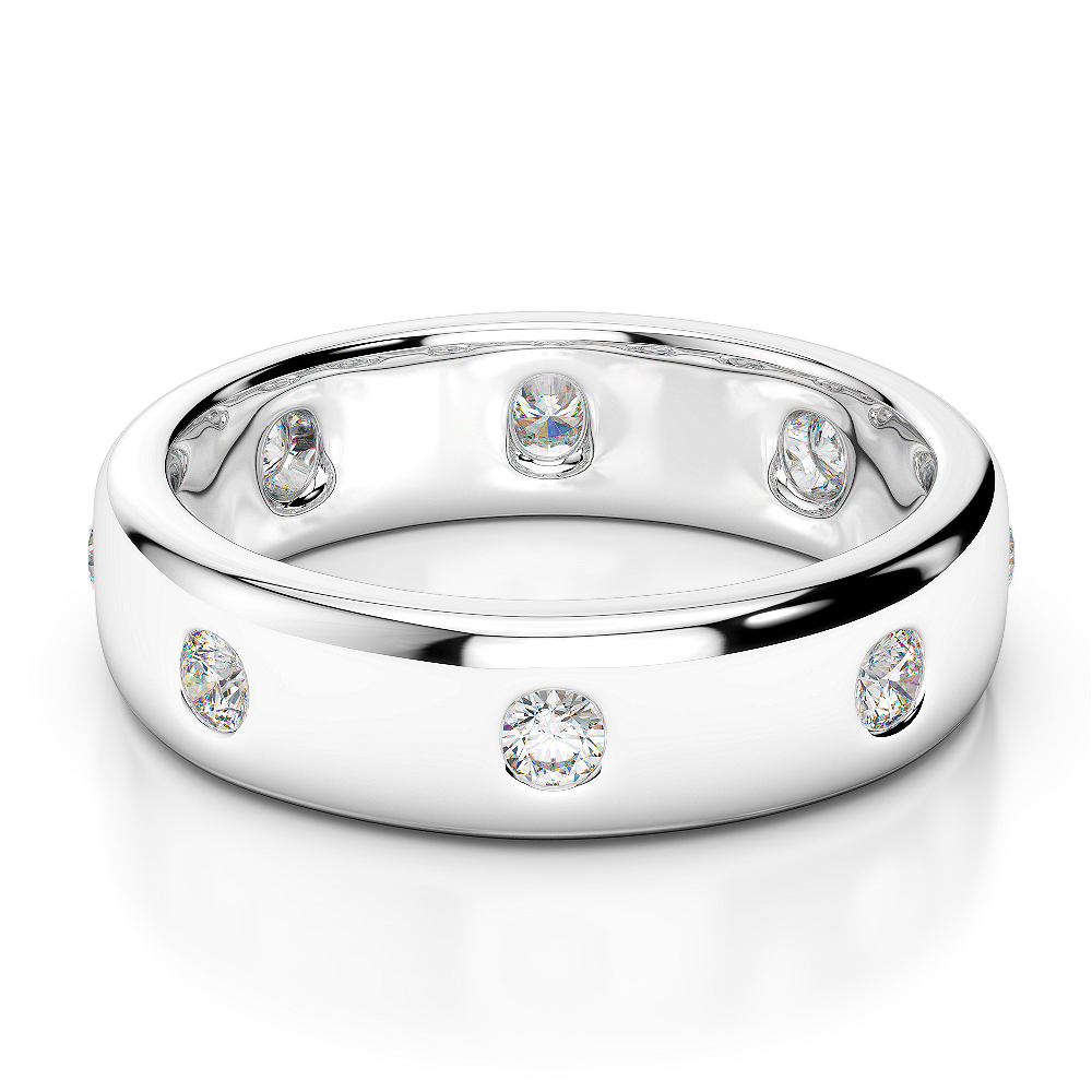 This gold/platinum wedding band features round diamonds and a gypsy/flush set, symbolising love and commitment. It's a timeless and glamorous piece for a special day commemoration.
