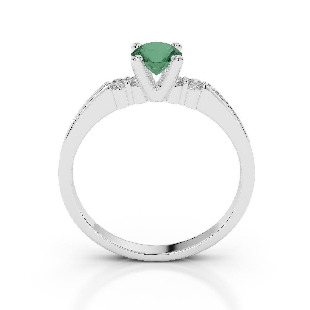 5 Stone Round Cut Diamond and Emerald Engagement Ring 0247