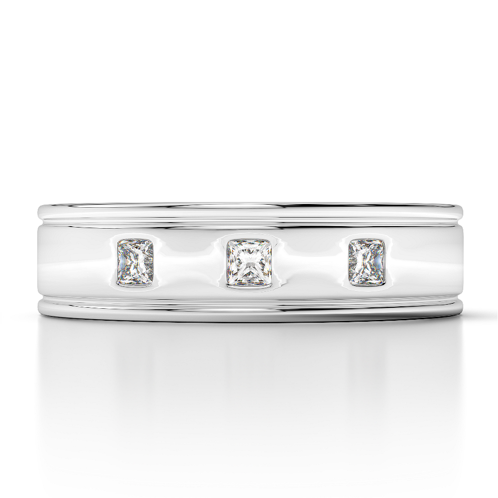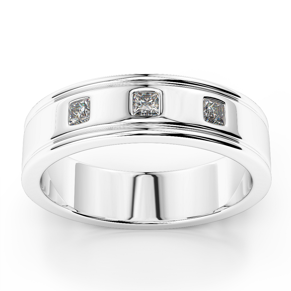 5MM 3 Stone Princess Cut Diamond Mens Wedding Ring 0082