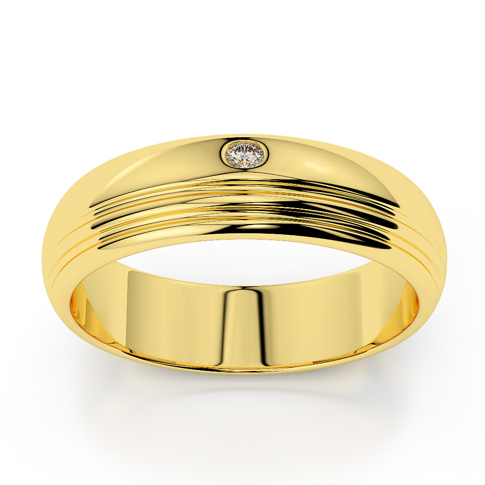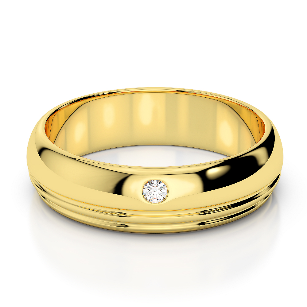 5MM Flush Set One Stone Diamond Mens Wedding Ring 0085