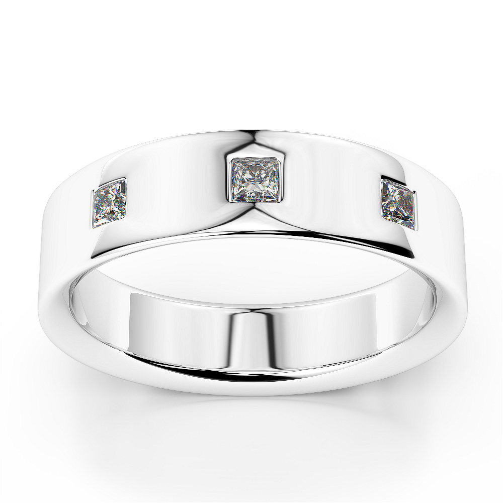 5MM Flush Set Three Stone Diamond Mens Wedding Ring 0100