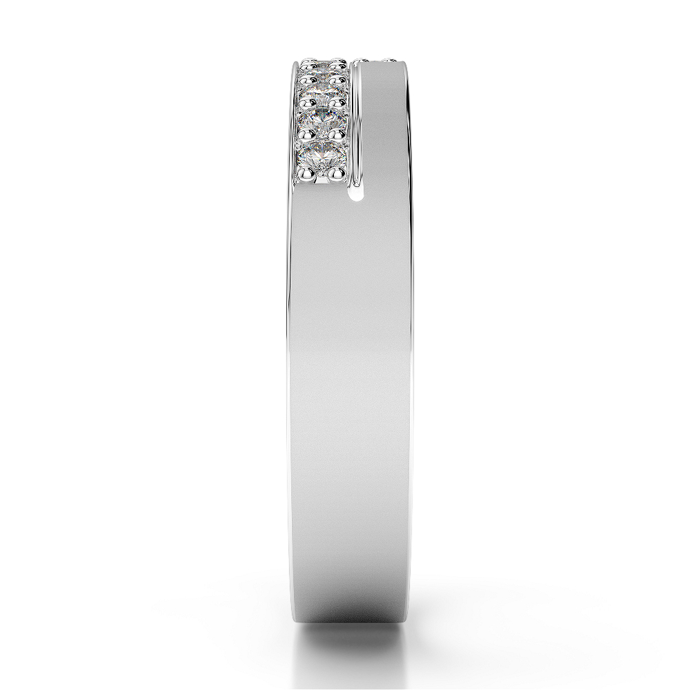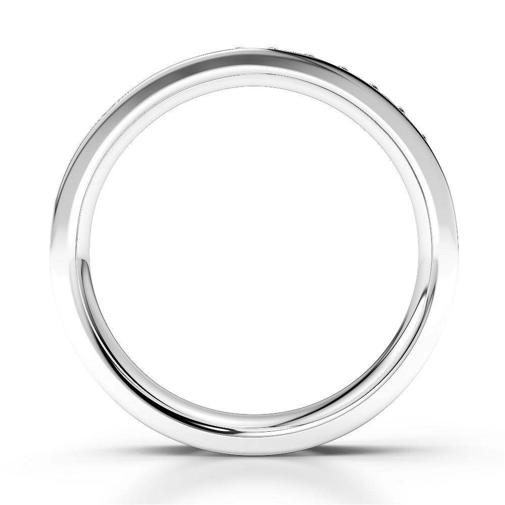 Our diamond wedding band, adorned with dazzling round diamonds in a prong setting, is a precision-crafted, elegant accessory that enhances any ensemble, adding sophistication and glamour, making it a timeless and versatile accessory.