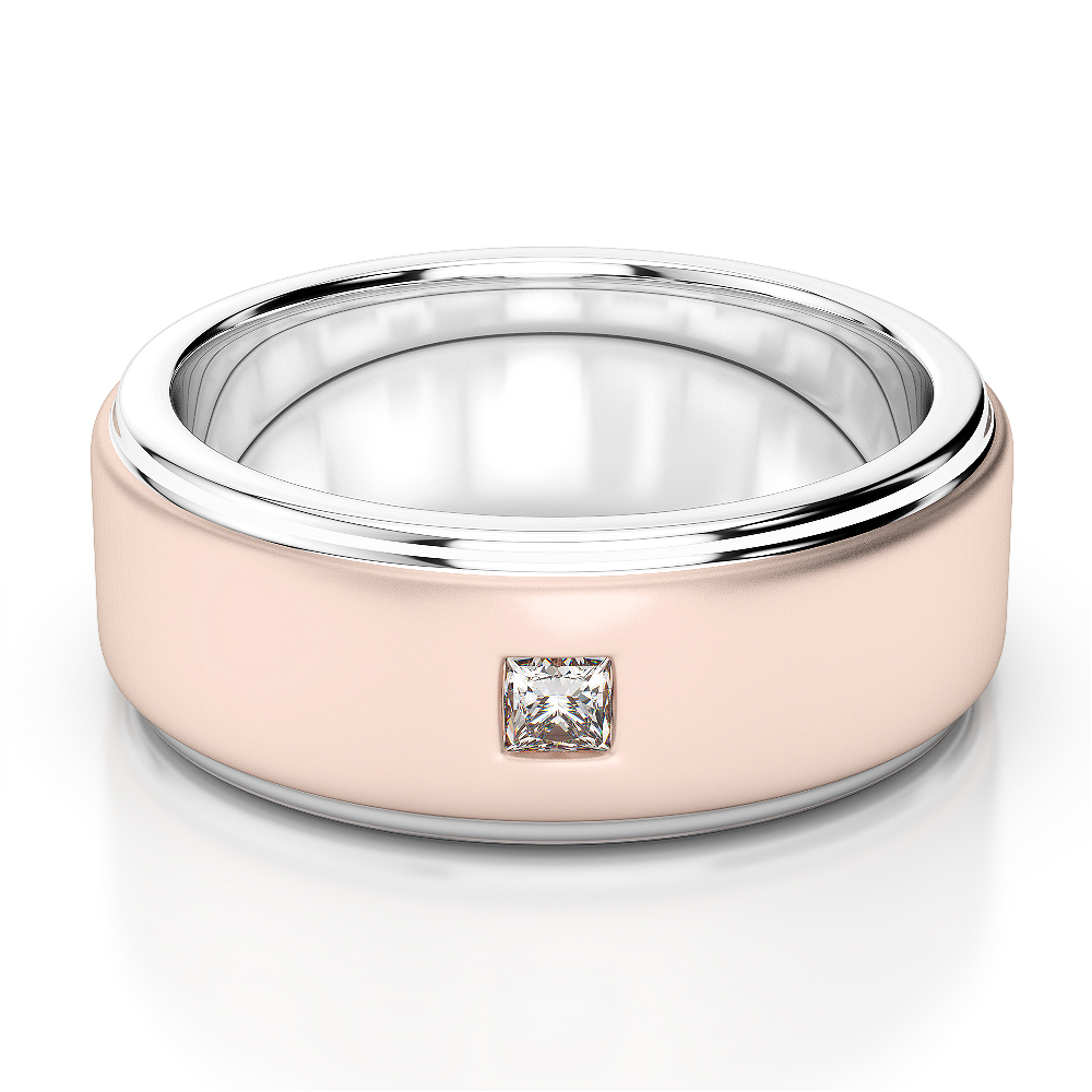 6 MM Flush Set 1 Stone Diamond Mens Band in White and Rose Gold 0111