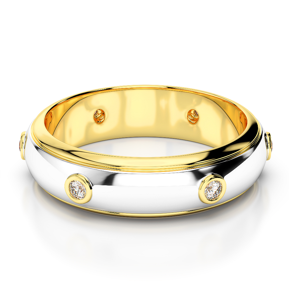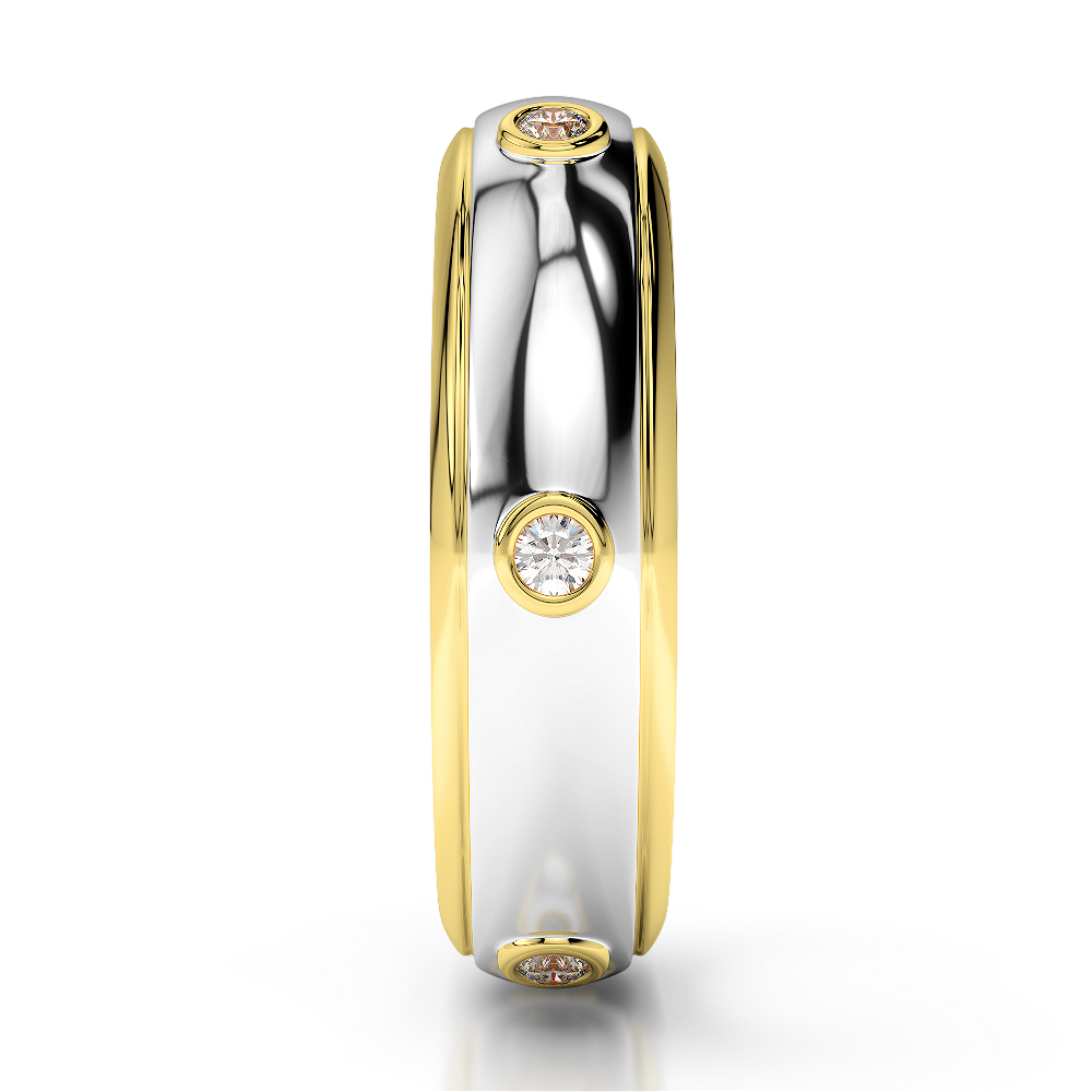 6MM Bezel Set Diamond Mens Band in White and Yellow Gold 0124
