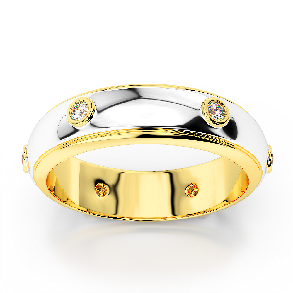 Discover the perfect symbol of your everlasting love with our exquisite wedding band, crafted from a harmonious blend of white gold and yellow gold. This elegant band features two stunning diamonds, adding a touch of brilliance and sophistication to your commitment.