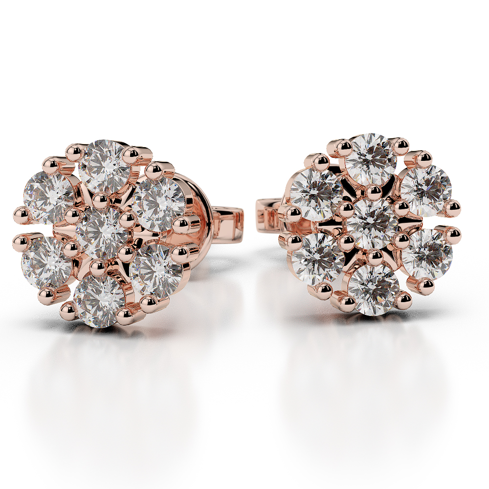 7 Stone Round Cut Cluster Diamond Earrings 0459