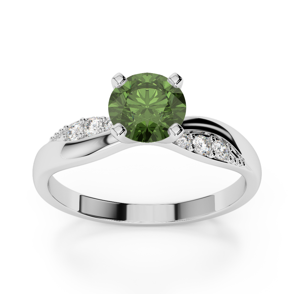 7 Stone Round Cut Green Tourmaline & Diamond Engagement Ring 0269