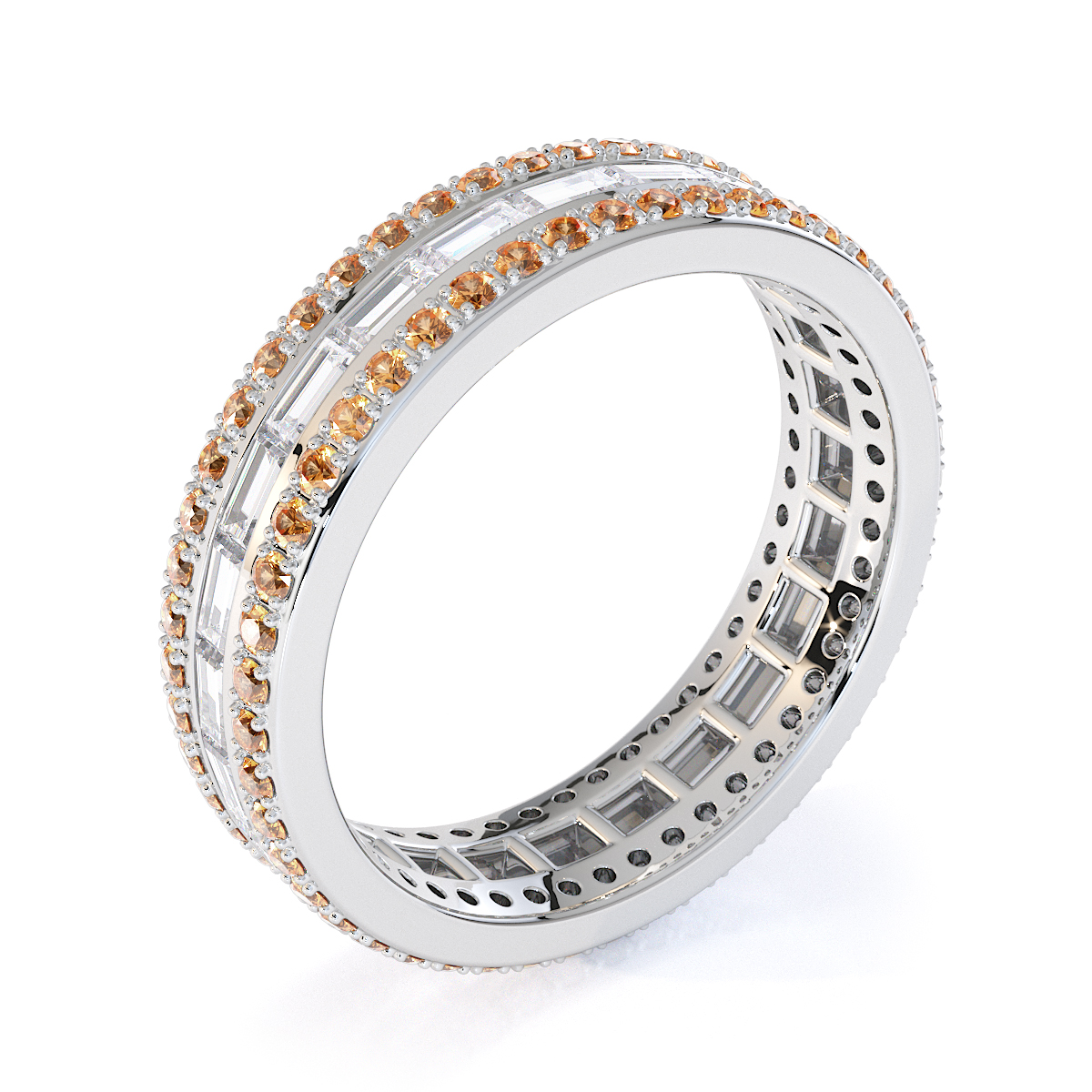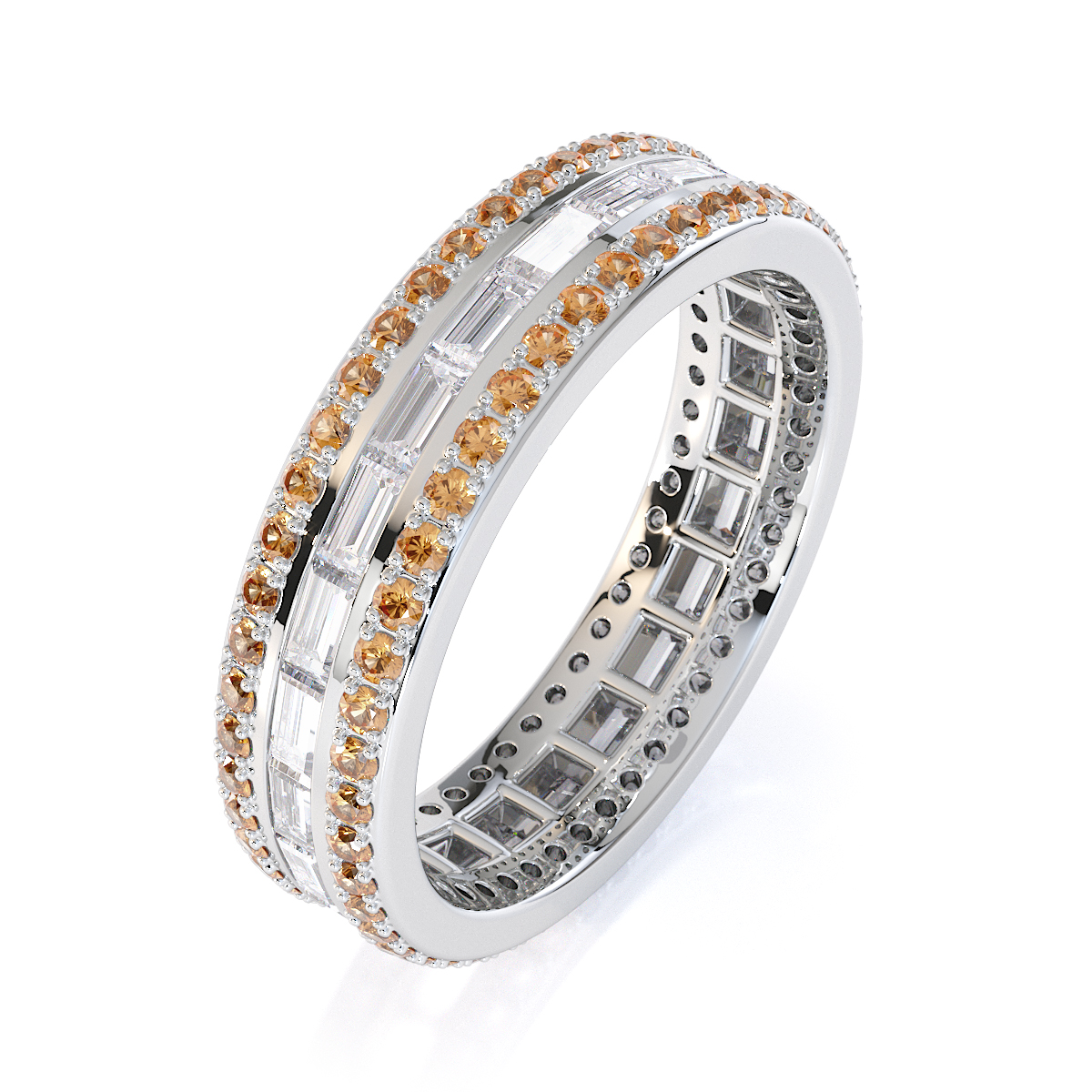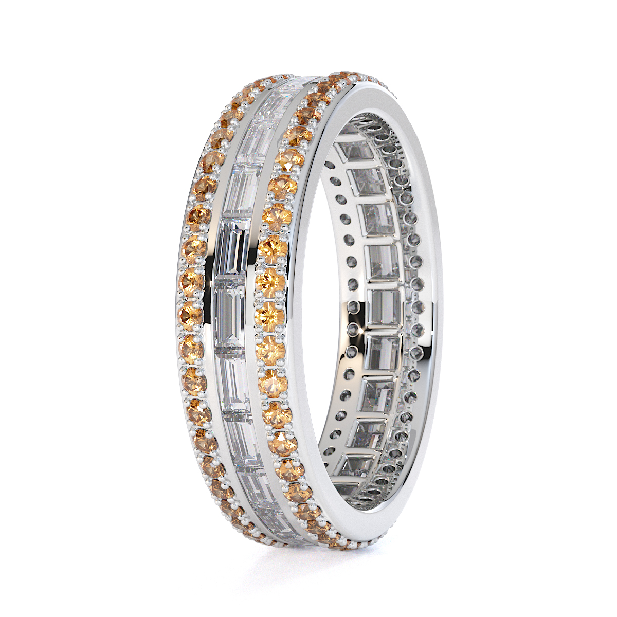 Baguette Cut Diamond & Round Citrine Full Eternity Ring 0432