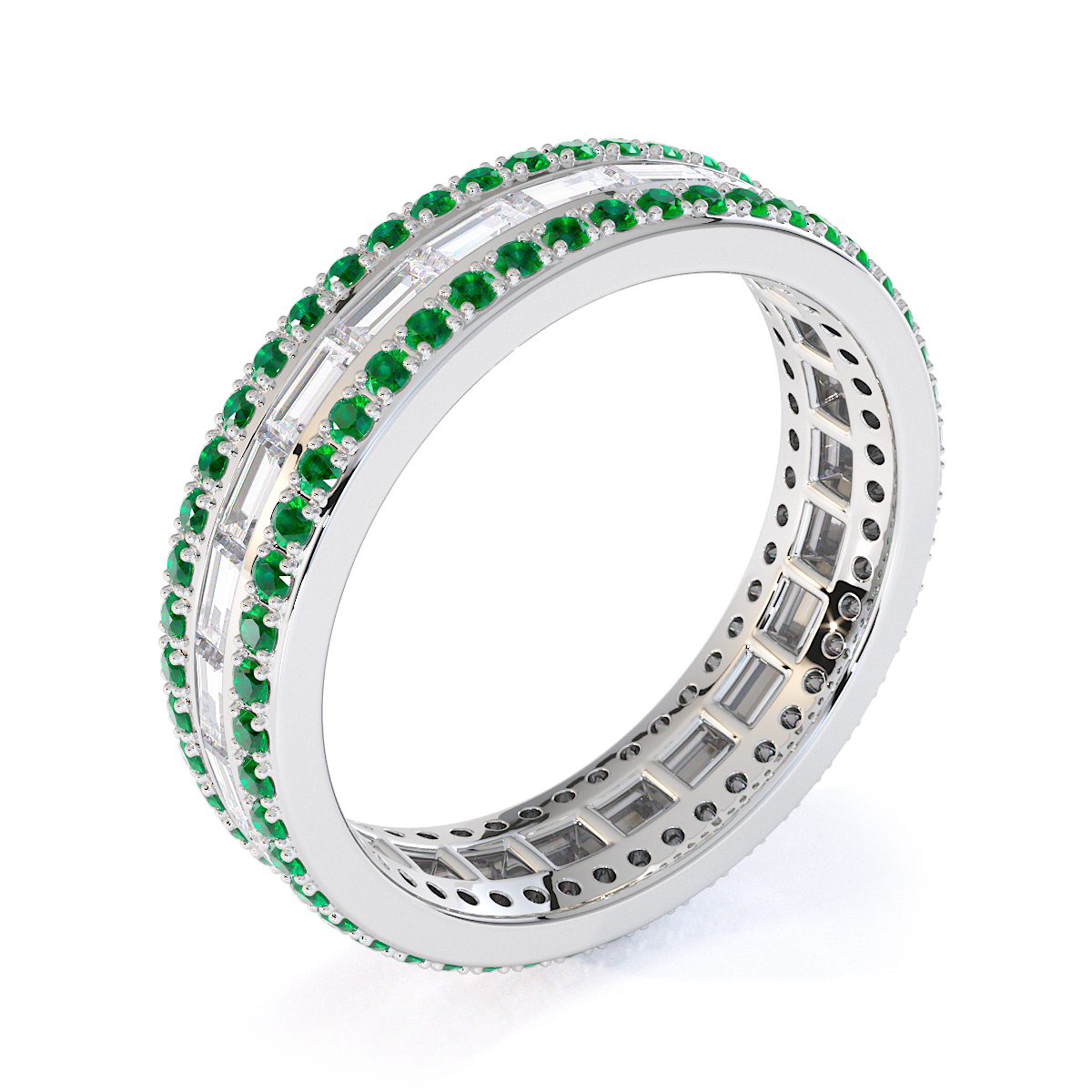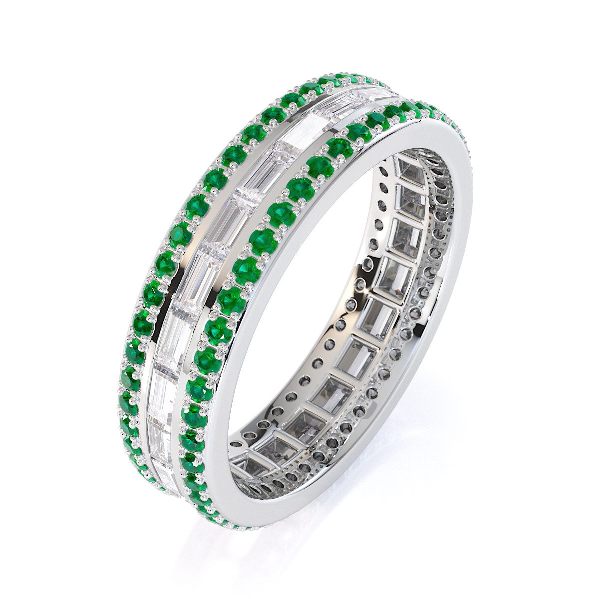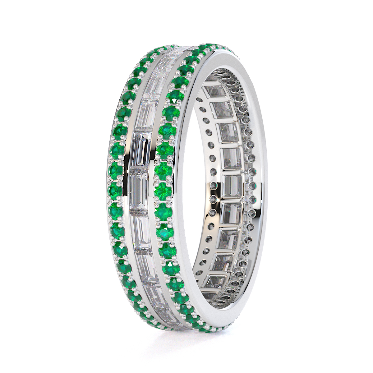 Baguette Cut Diamond & Round Emerald Full Eternity Ring 0432