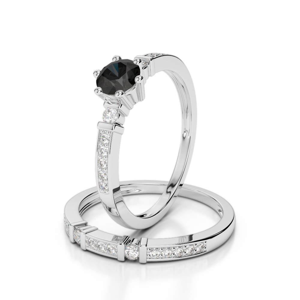 Bar and Prong Set Black Diamond Bridal Set Ring 0305