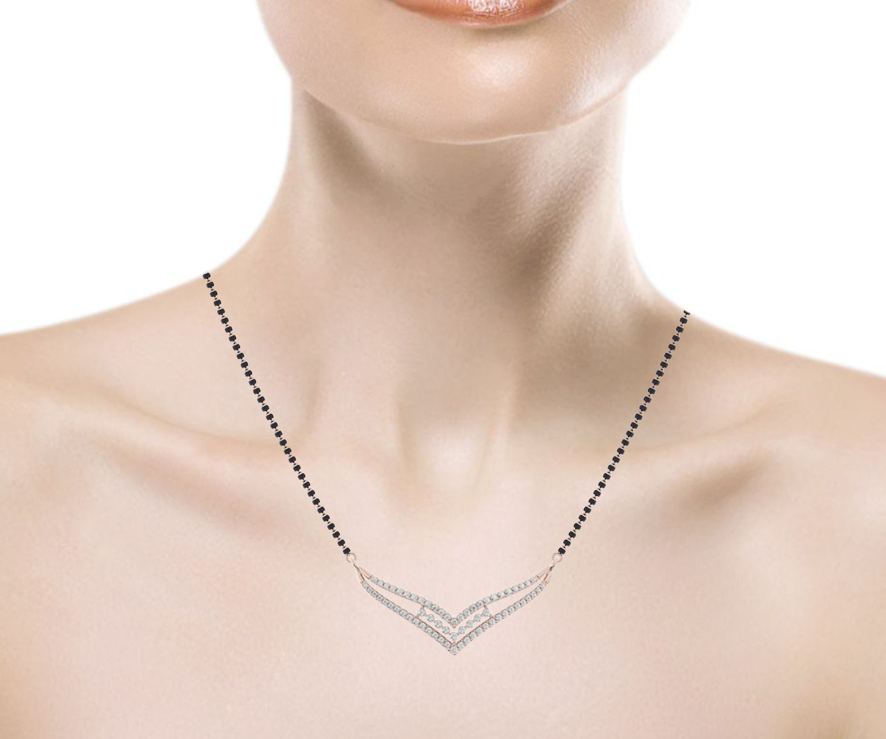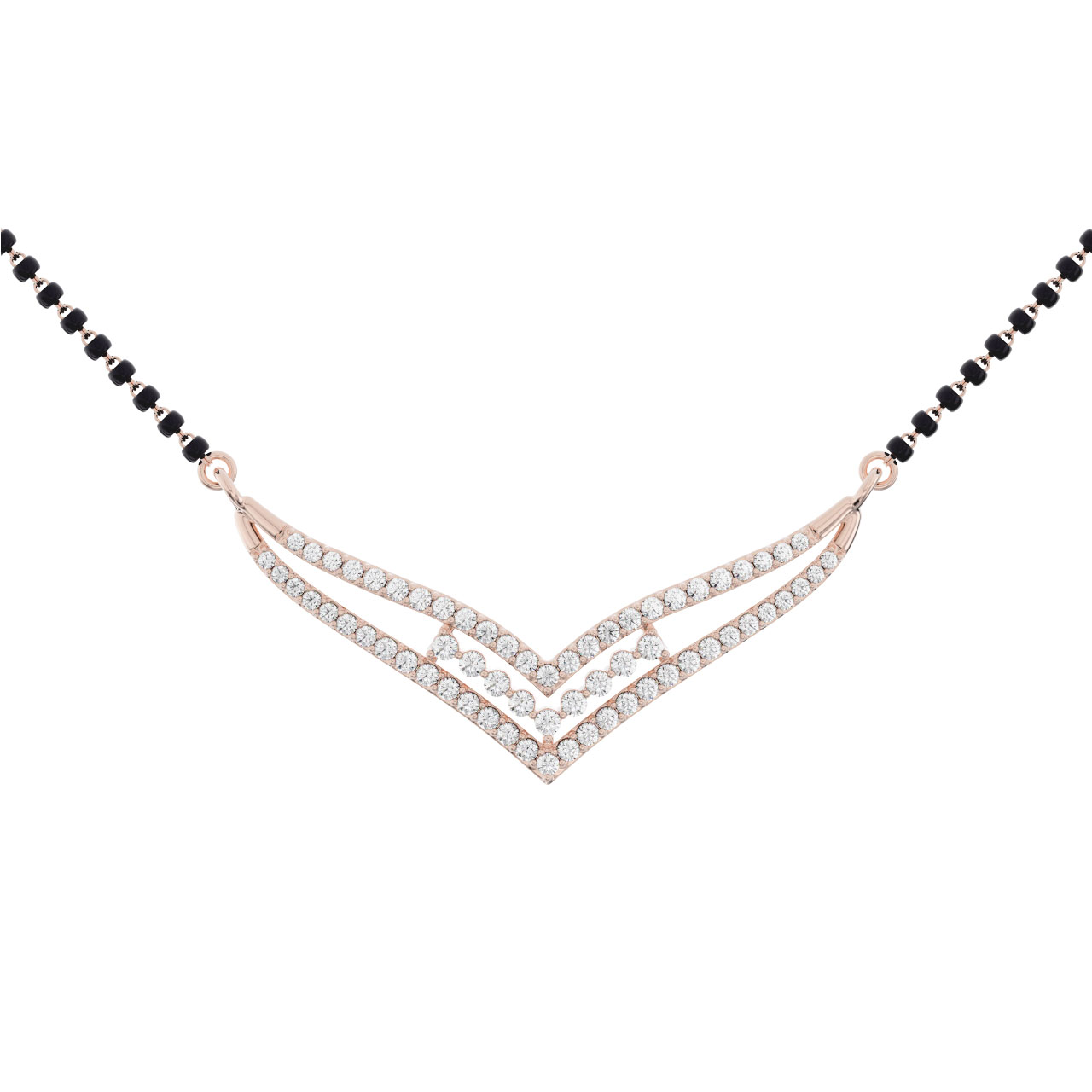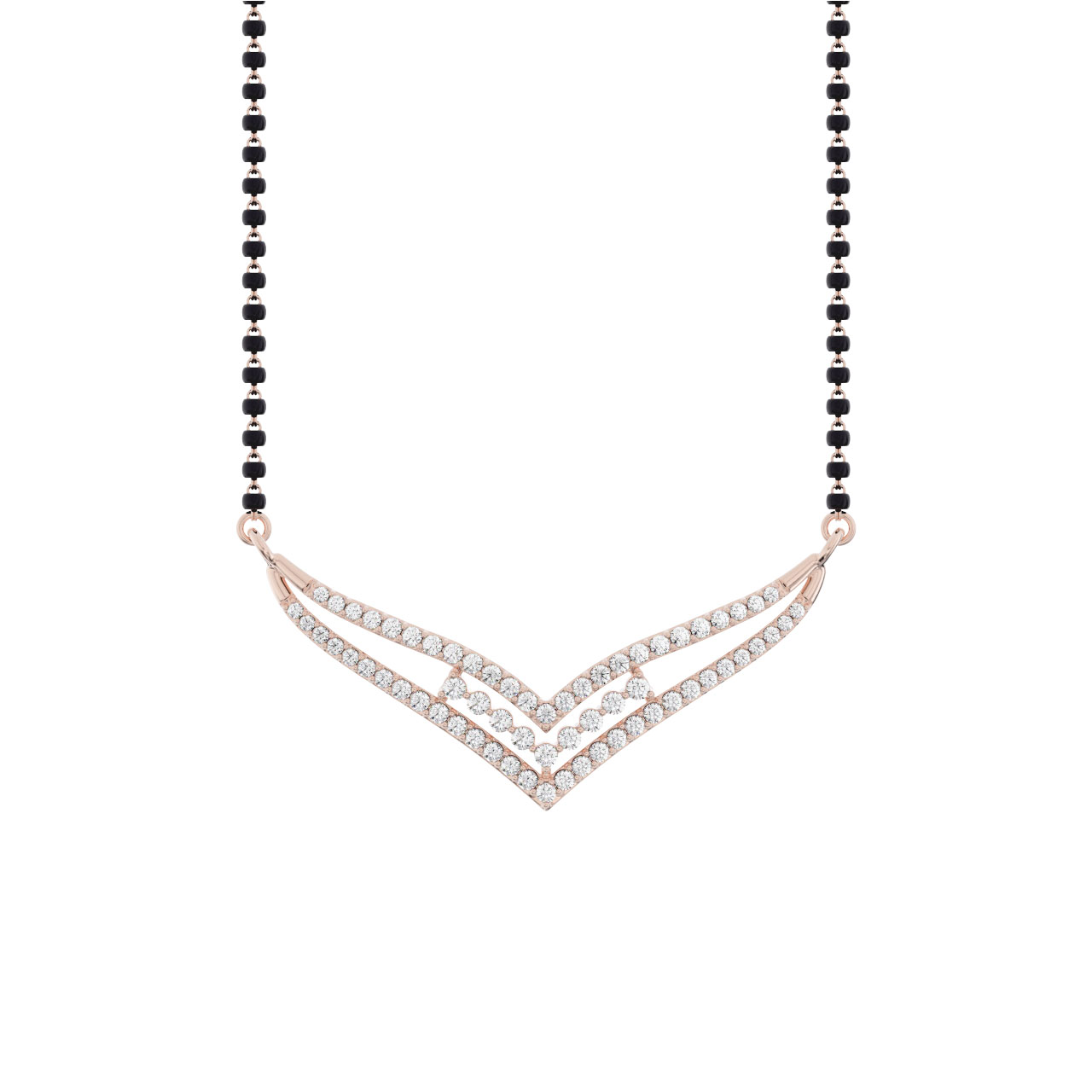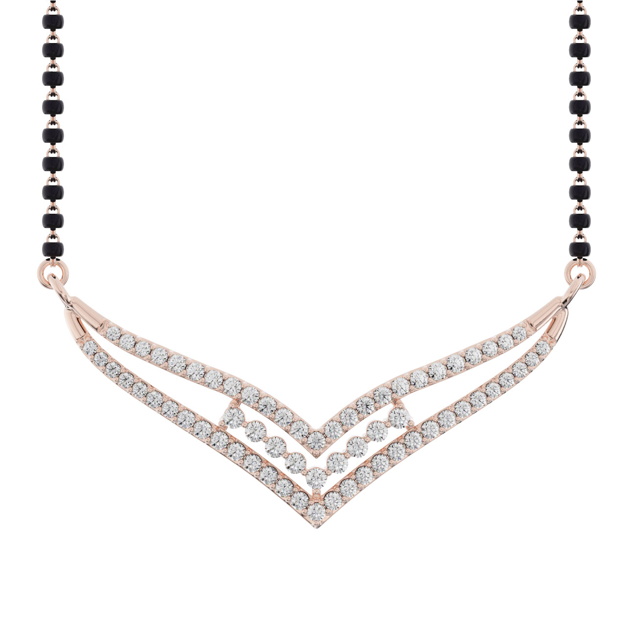 Sparkling diamonds decorate the Diamond Mangalsutra Necklace, a wonderful expression of grace and love. The prong adjustments provide a stable installation and increase brightness. Its classic design makes it perfect for heartfelt gifts or special events, and it will be treasured for a lifetime.