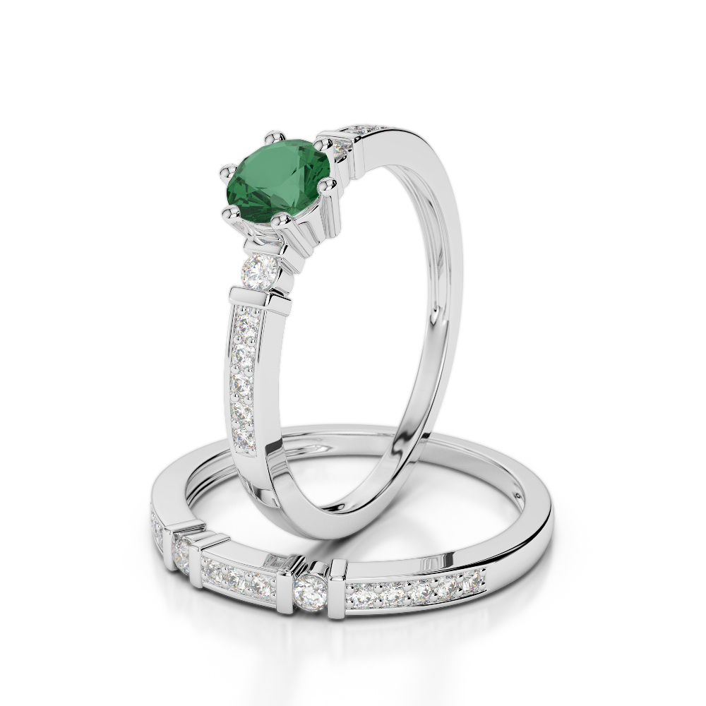 Bar and Prong Set Emerald & Diamond Bridal Set Ring 0305