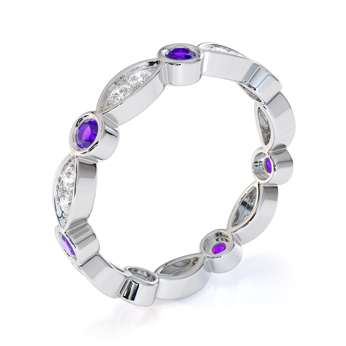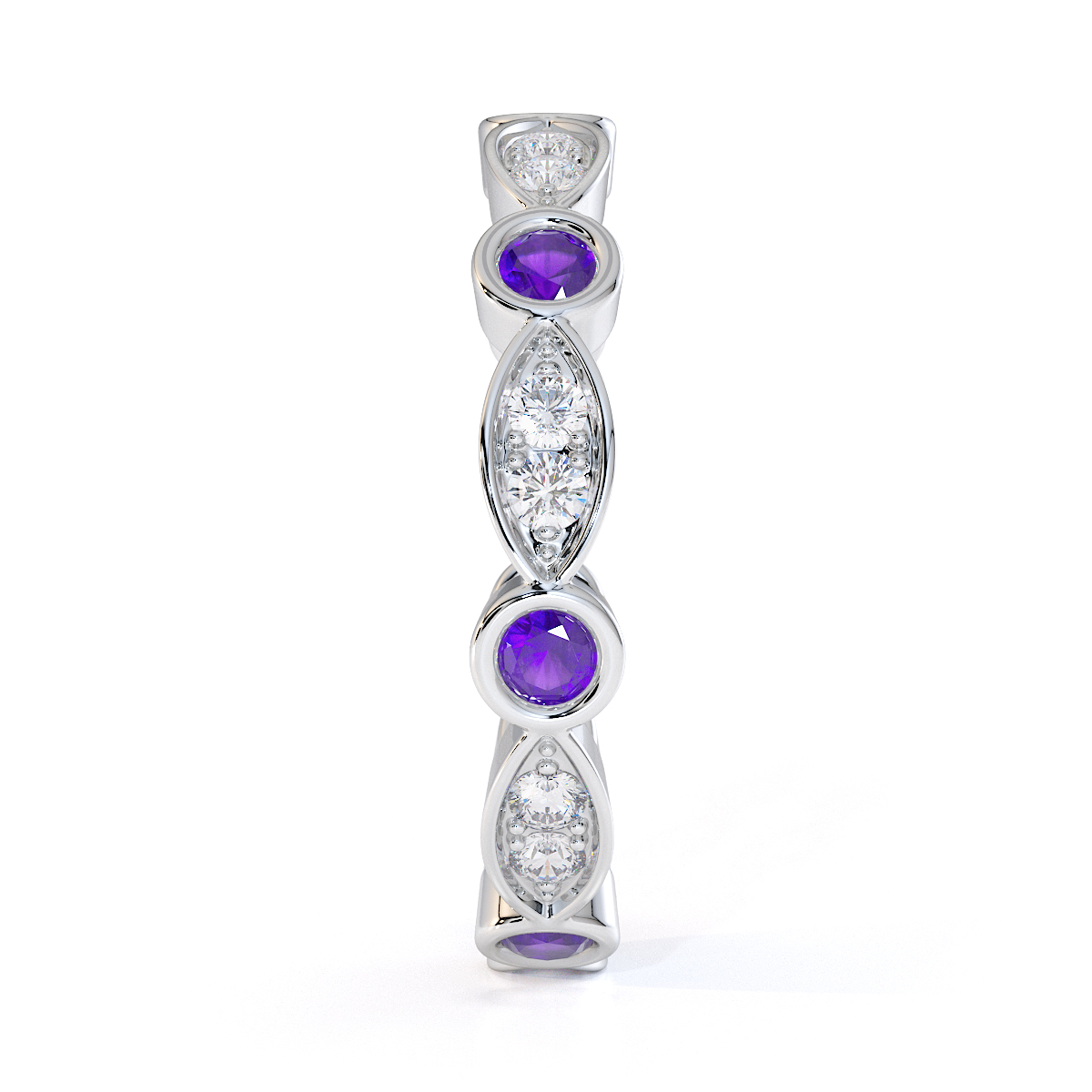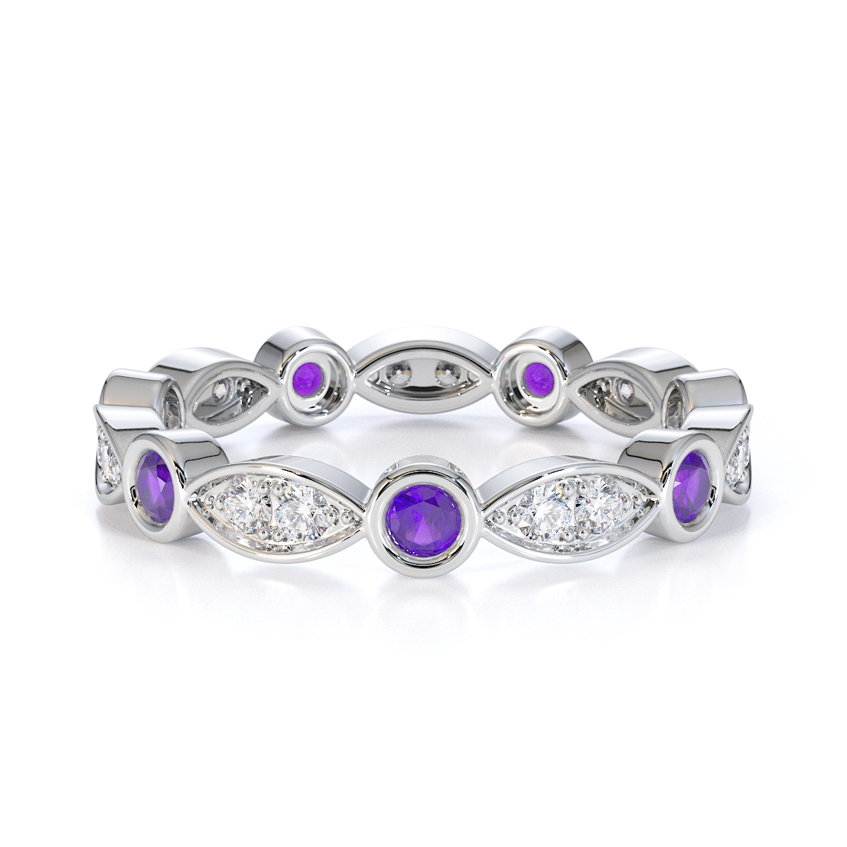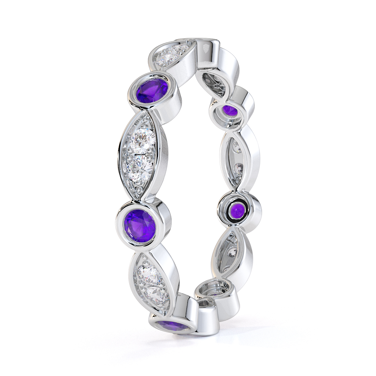 Bezel Set Amethyst & Prong Set Diamond Full Eternity Ring 0434