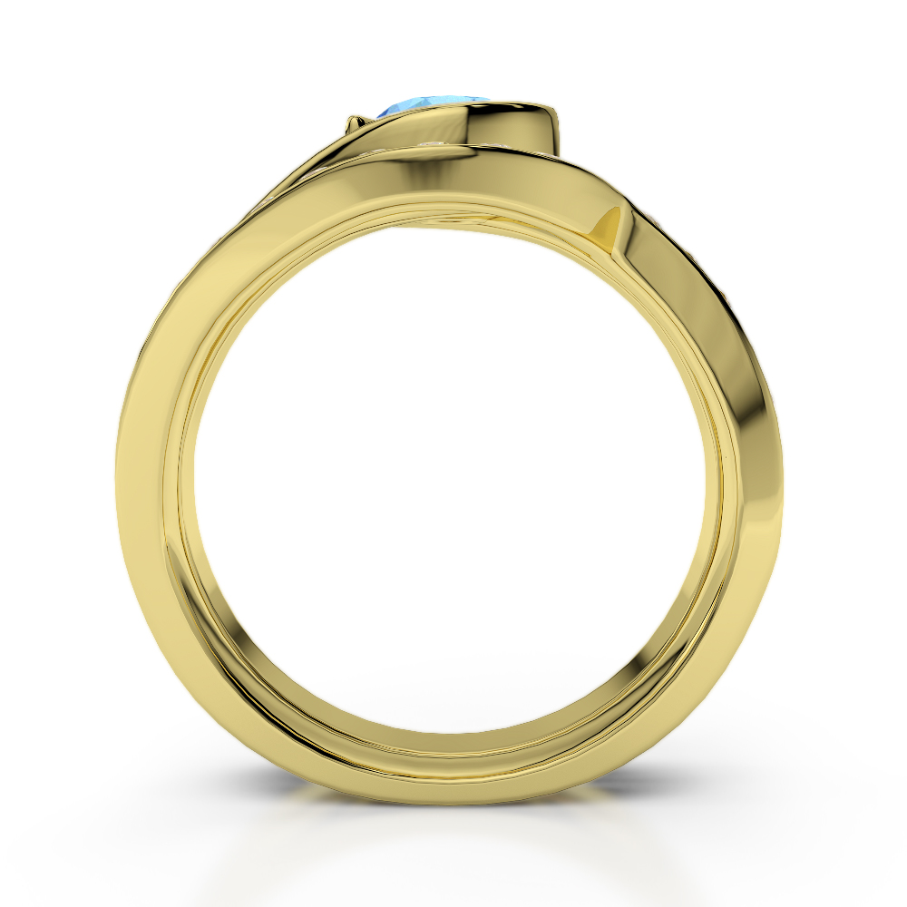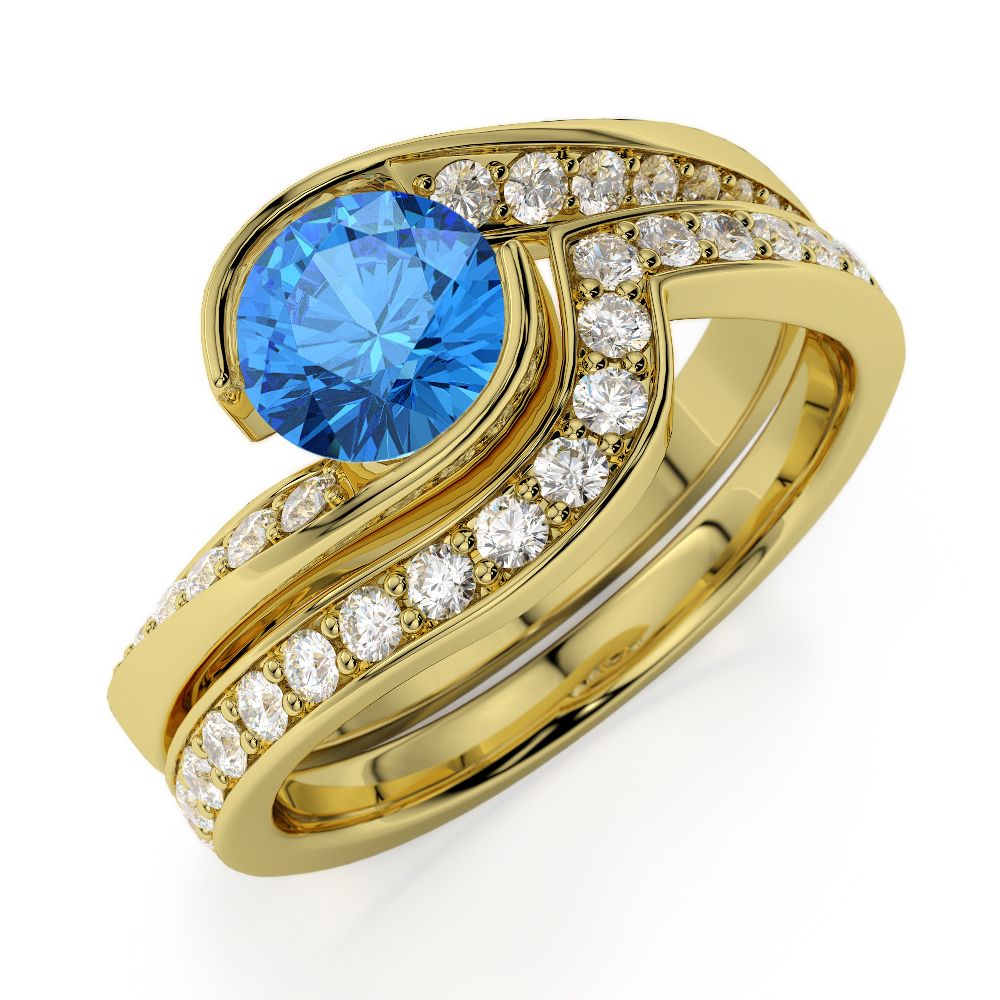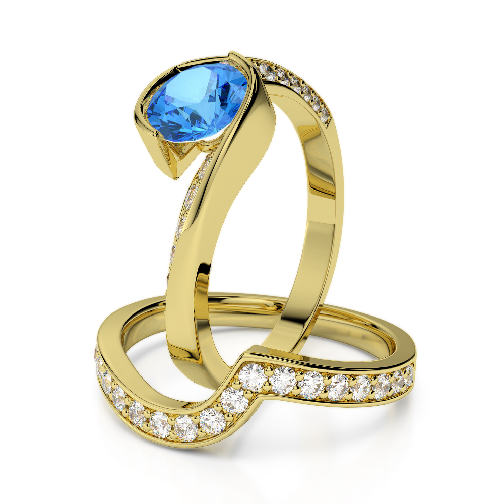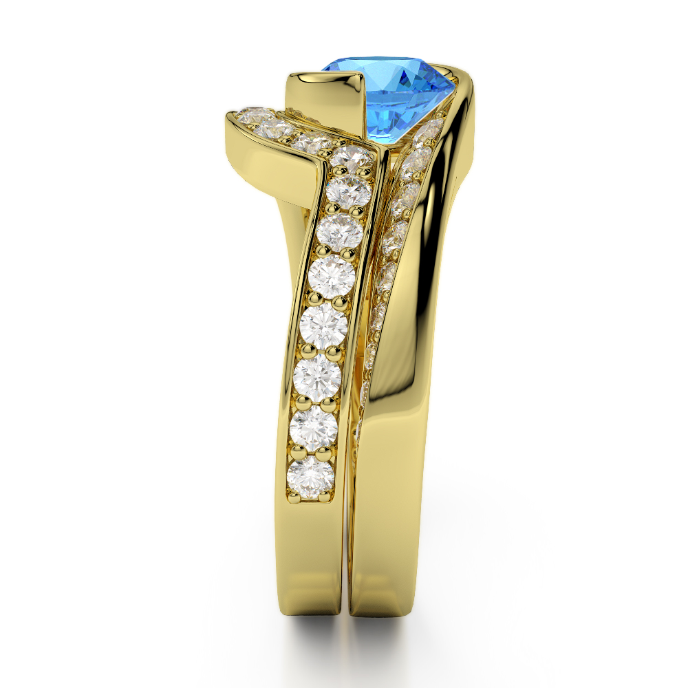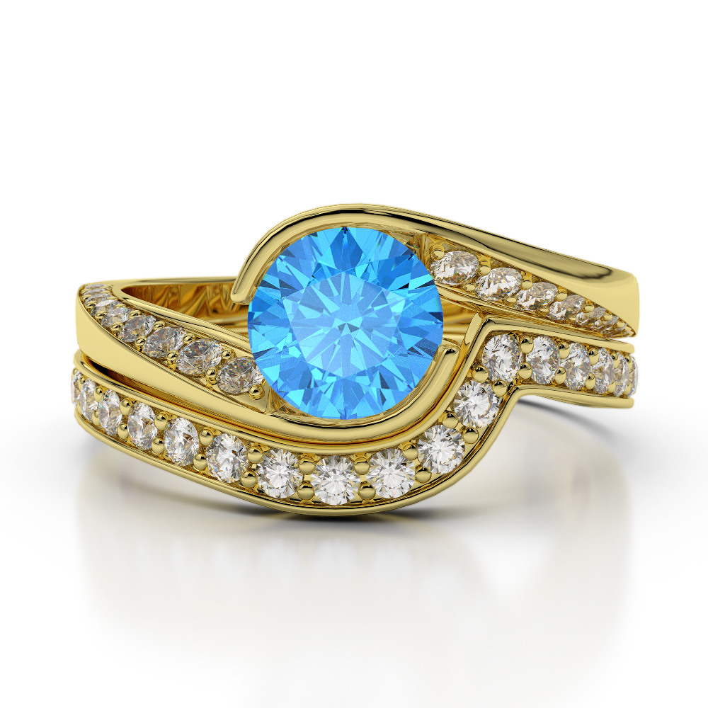 Bezel Set Blue Topaz and Prong Set Diamond Bridal Set Ring 0333