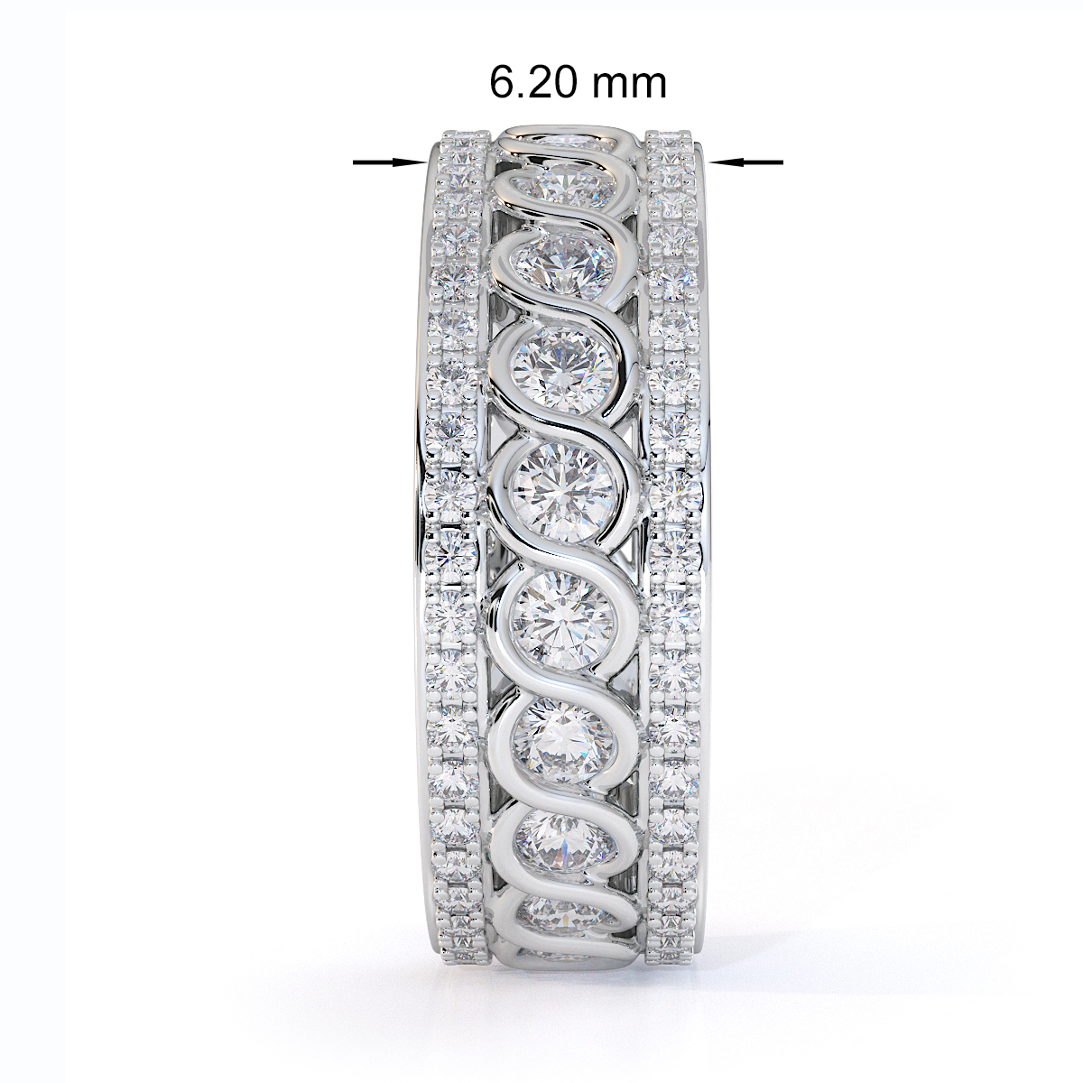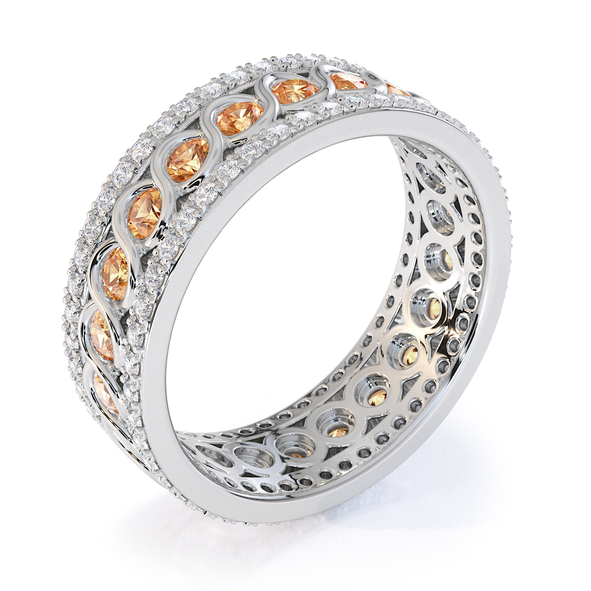 This eternity ring is a stunning combination of citrines and diamonds, set in a full-eternity design. The split prong setting adds elegance, making it a symbol of love and commitment. It’s a unique and luxurious choice for those seeking a lasting piece.