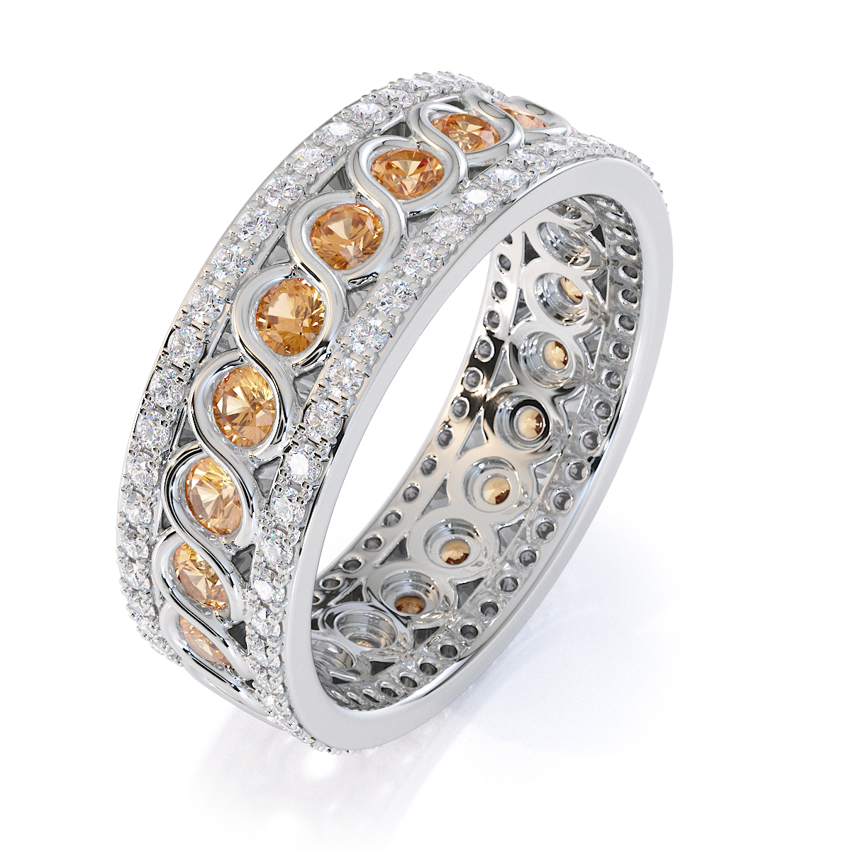 Bezel Set Citrine and Prong Set Diamond Full Eternity Ring 0448