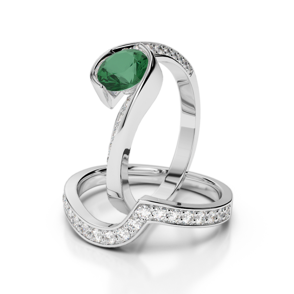 Bezel Set Emerald and Prong Set Diamond Bridal Set Ring 0333