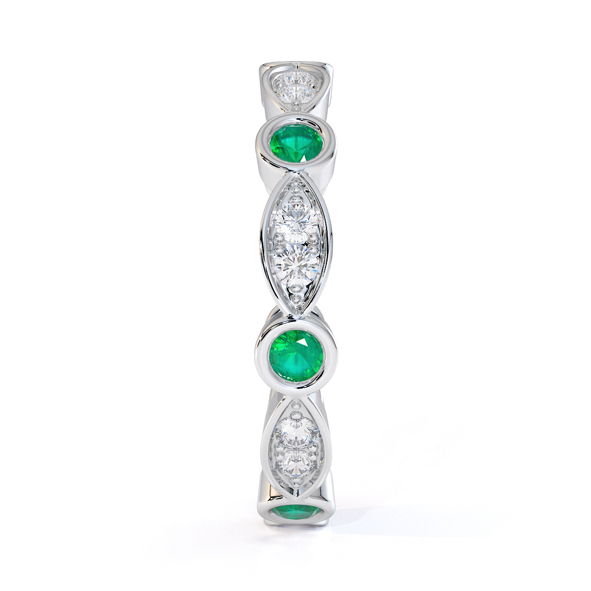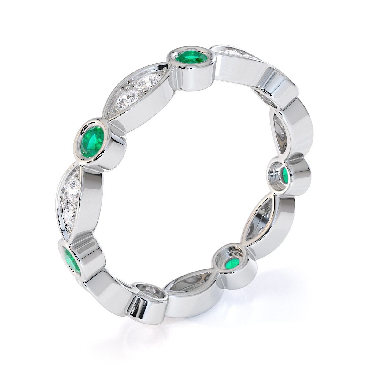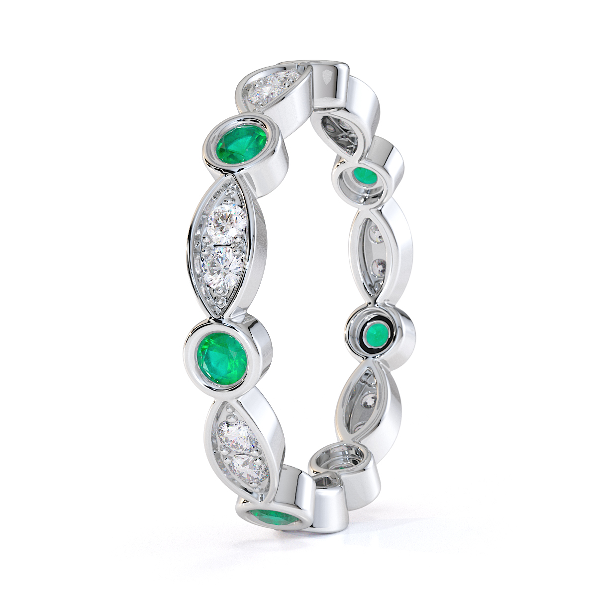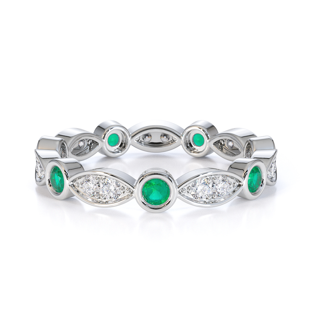 Bezel Set Emerald & Prong Set Diamond Full Eternity Ring 0434