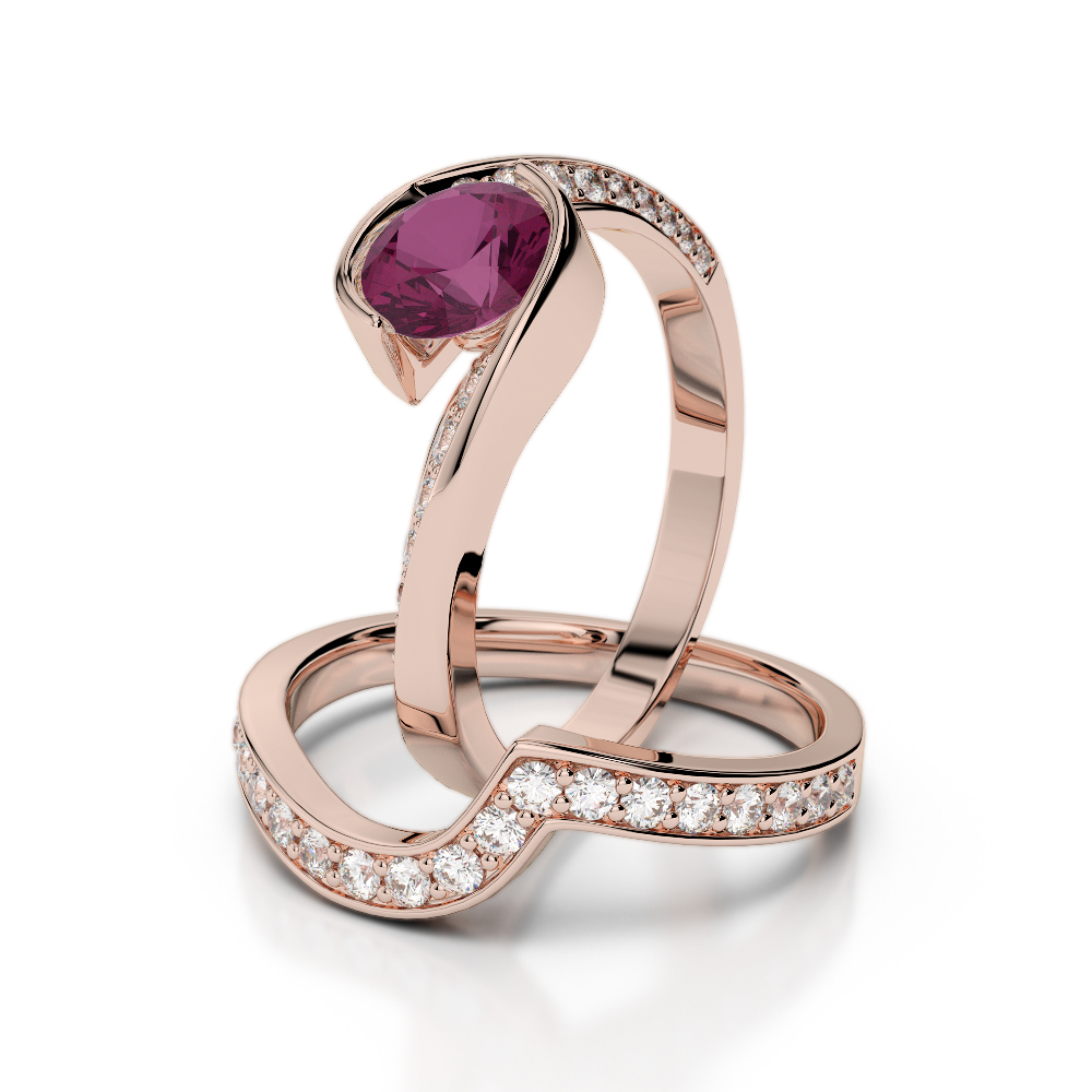 Bezel Set Ruby and Prong Set Diamond Bridal Set Ring 0333
