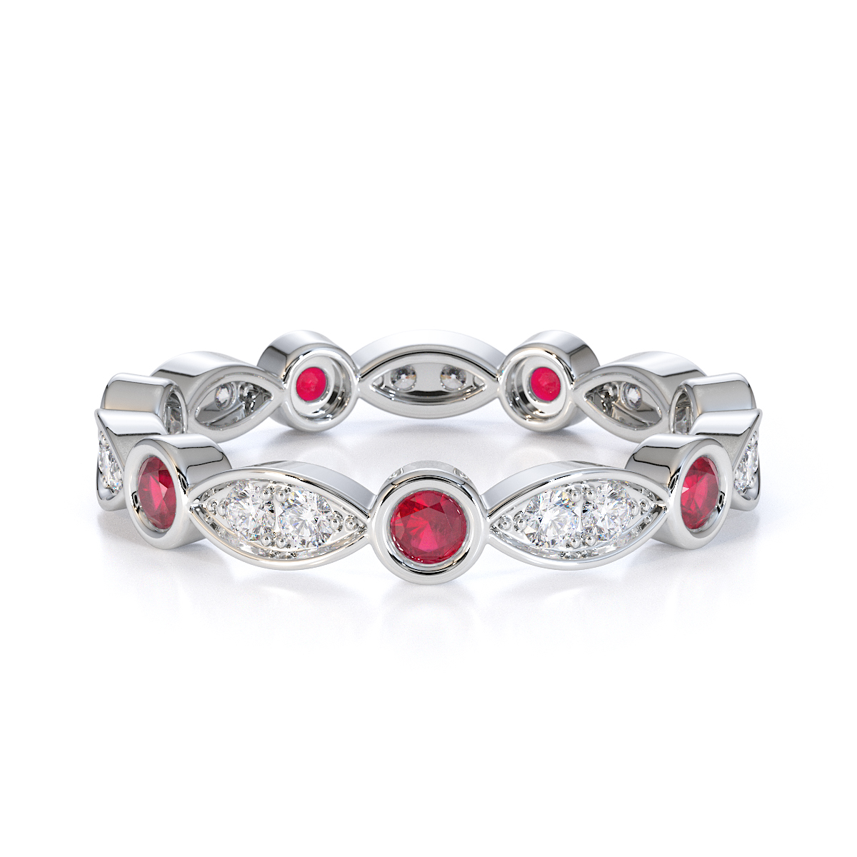 Bezel Set Ruby & Prong Set Diamond Full Eternity Ring 0434