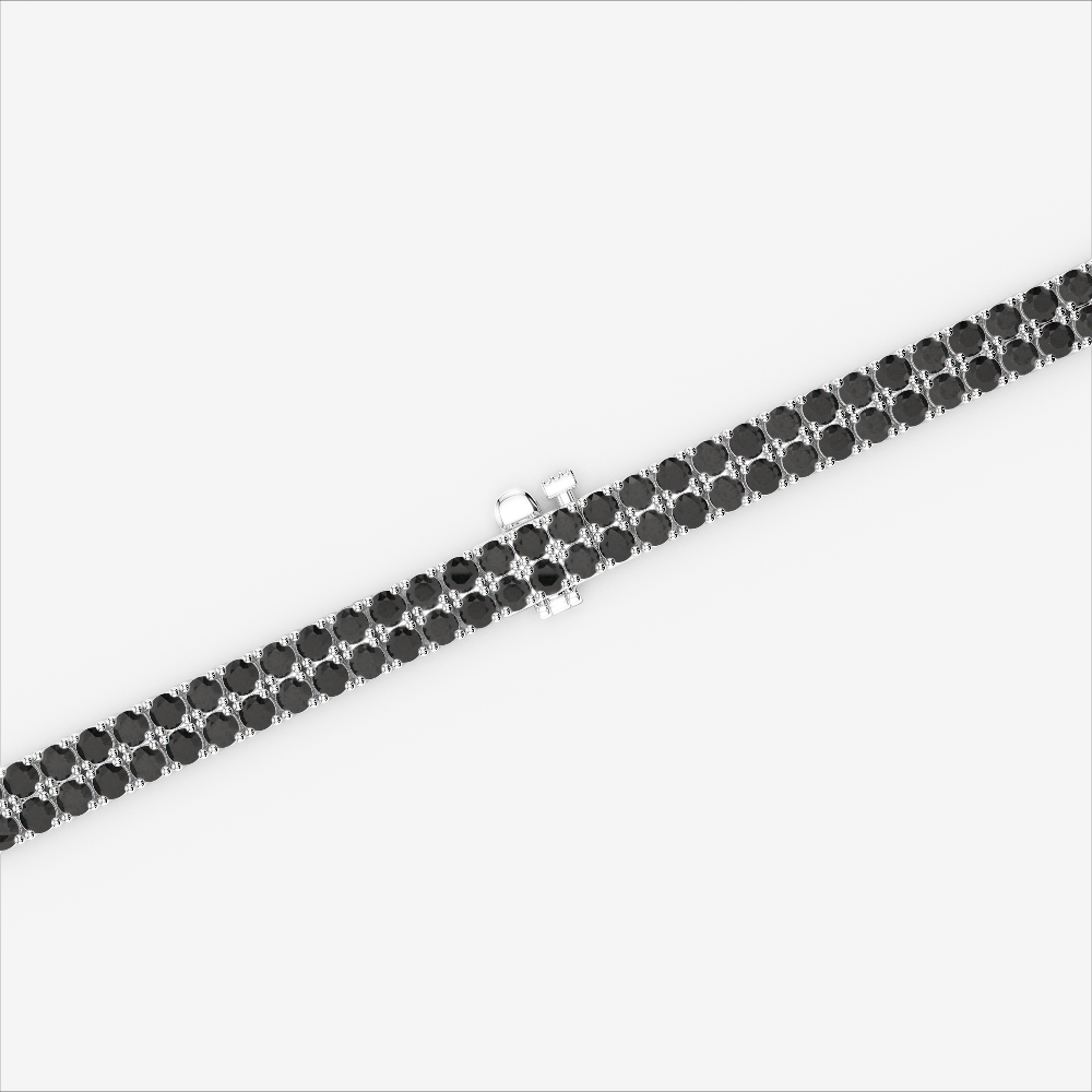 This Double Row Prong Set Round Cut Black Diamond Tennis Bracelet is a refined expression of luxury. Each Black Diamond is hand-selected for brilliance, forming a continuous, sparkling band that embodies timeless grace and exquisite craftsmanship.