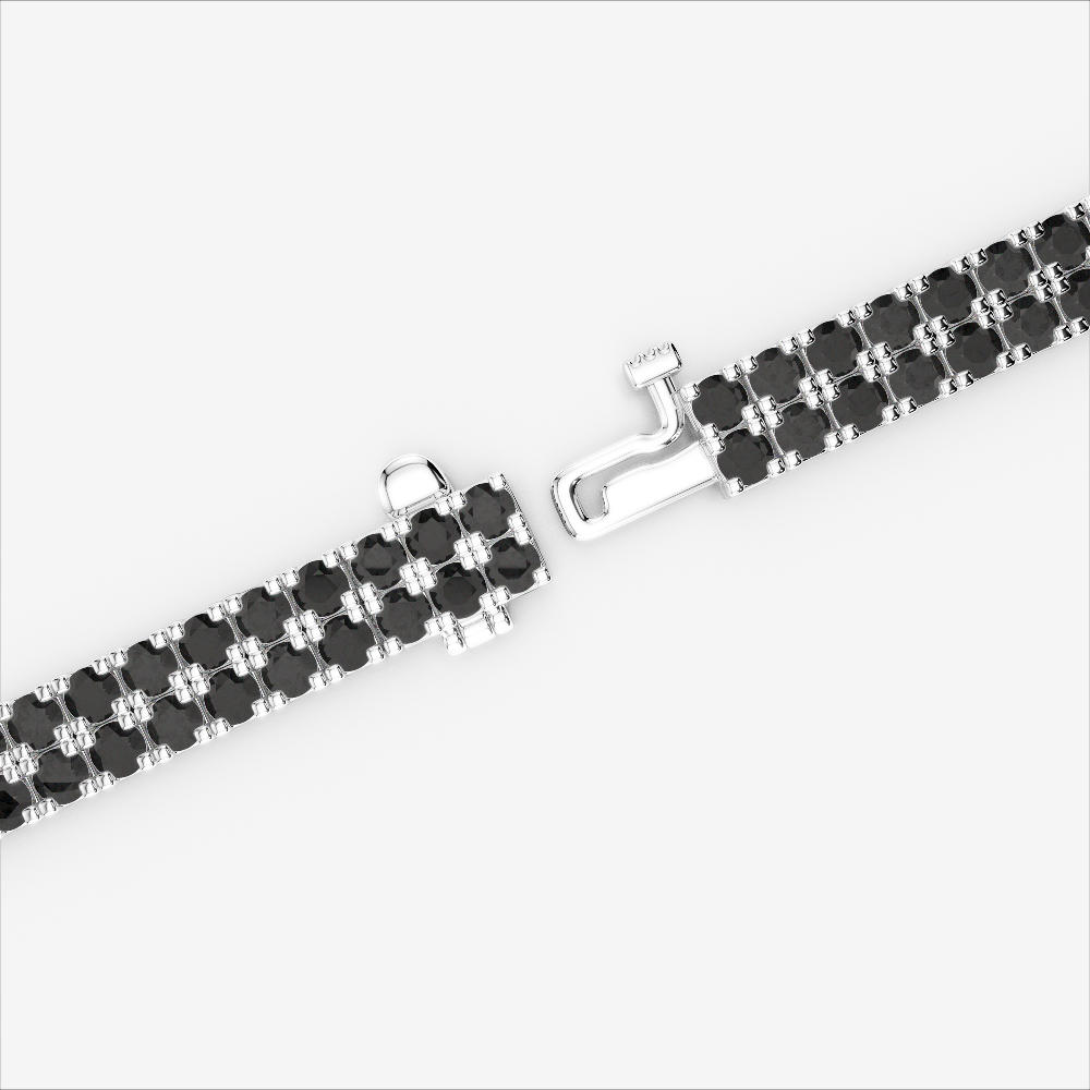 This Double Row Round Cut Black Diamond Tennis Bracelet features prong set diamonds that offer maximum sparkle. The classic design ensures it's suitable for any occasion, providing lasting beauty with a refined, modern twist.