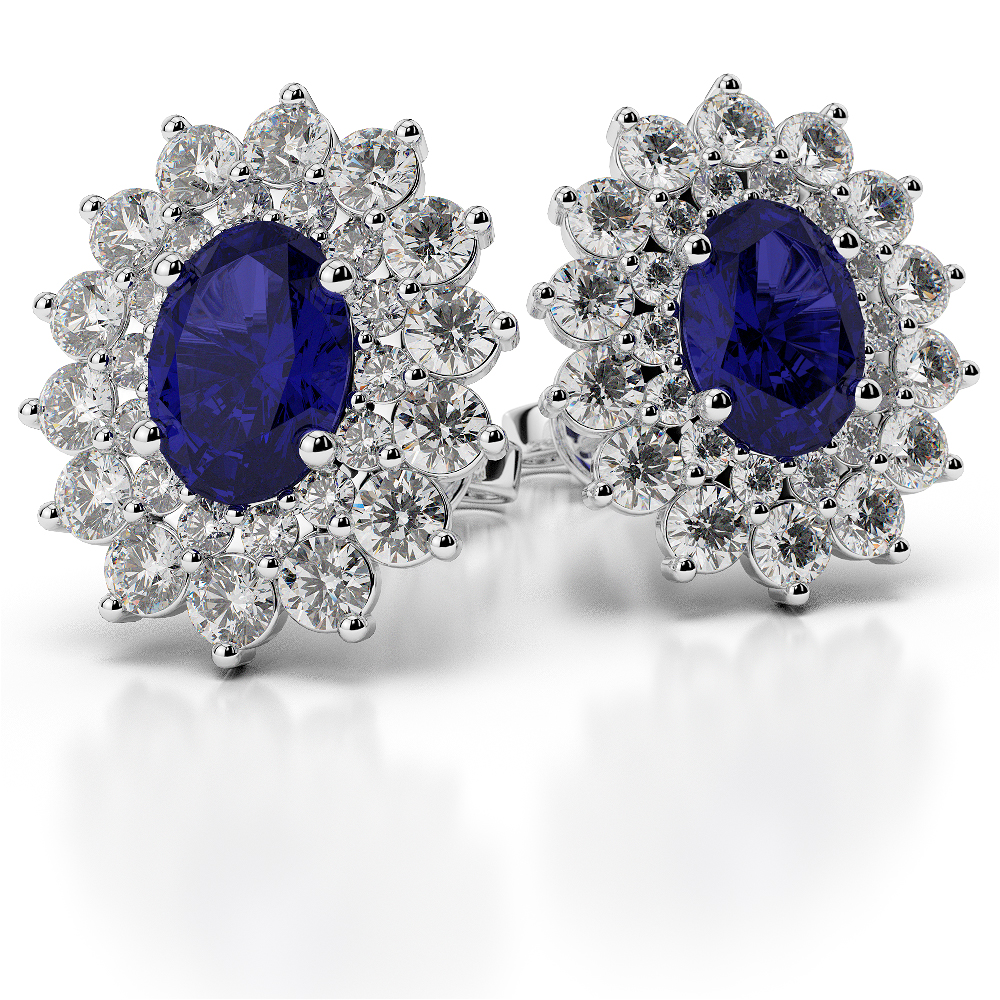 Blue Sapphire Earrings With Round Cut Diamond 0478