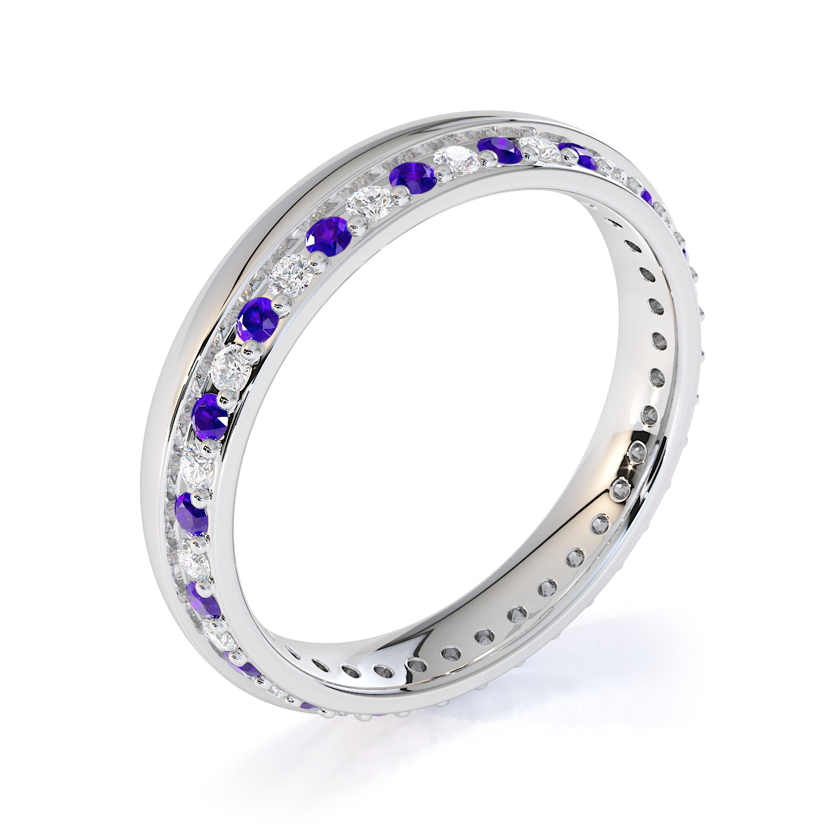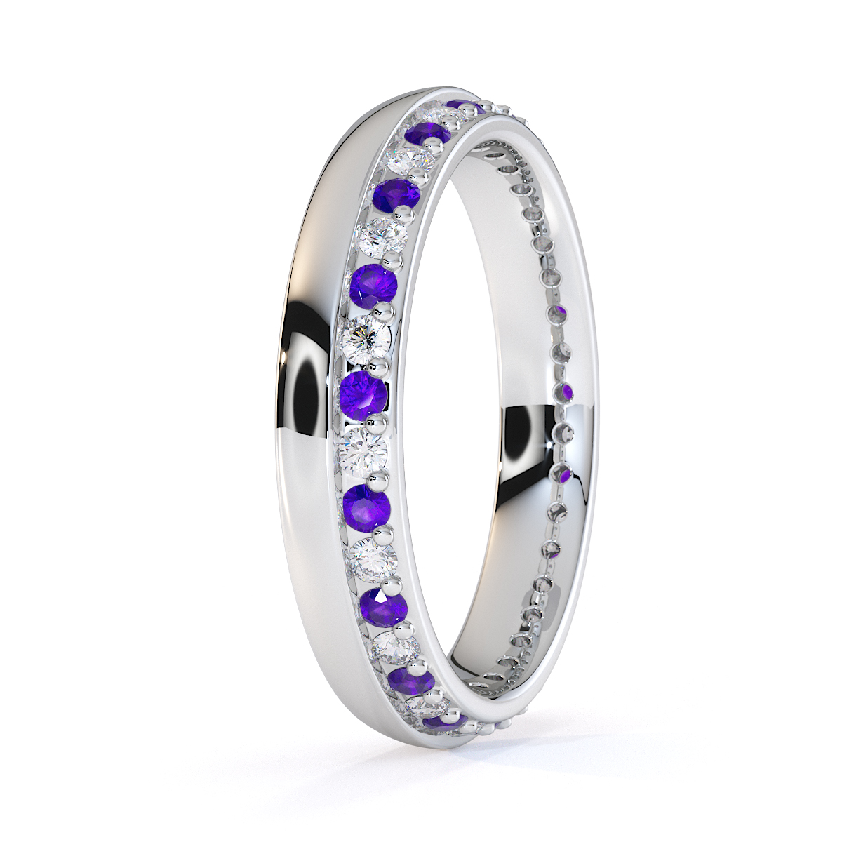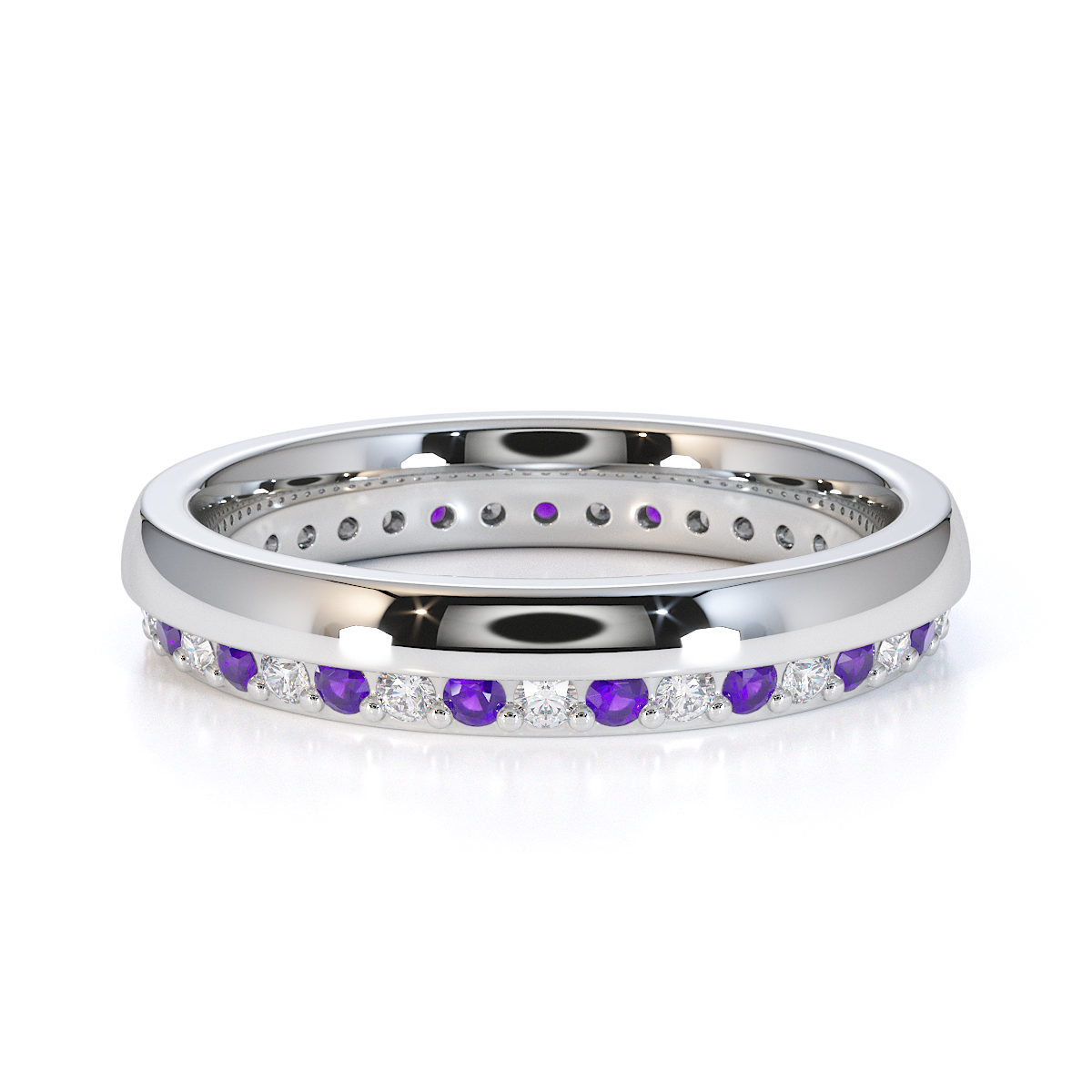 Channel and Prong Set Amethyst Full Eternity Ring With Diamond 0440