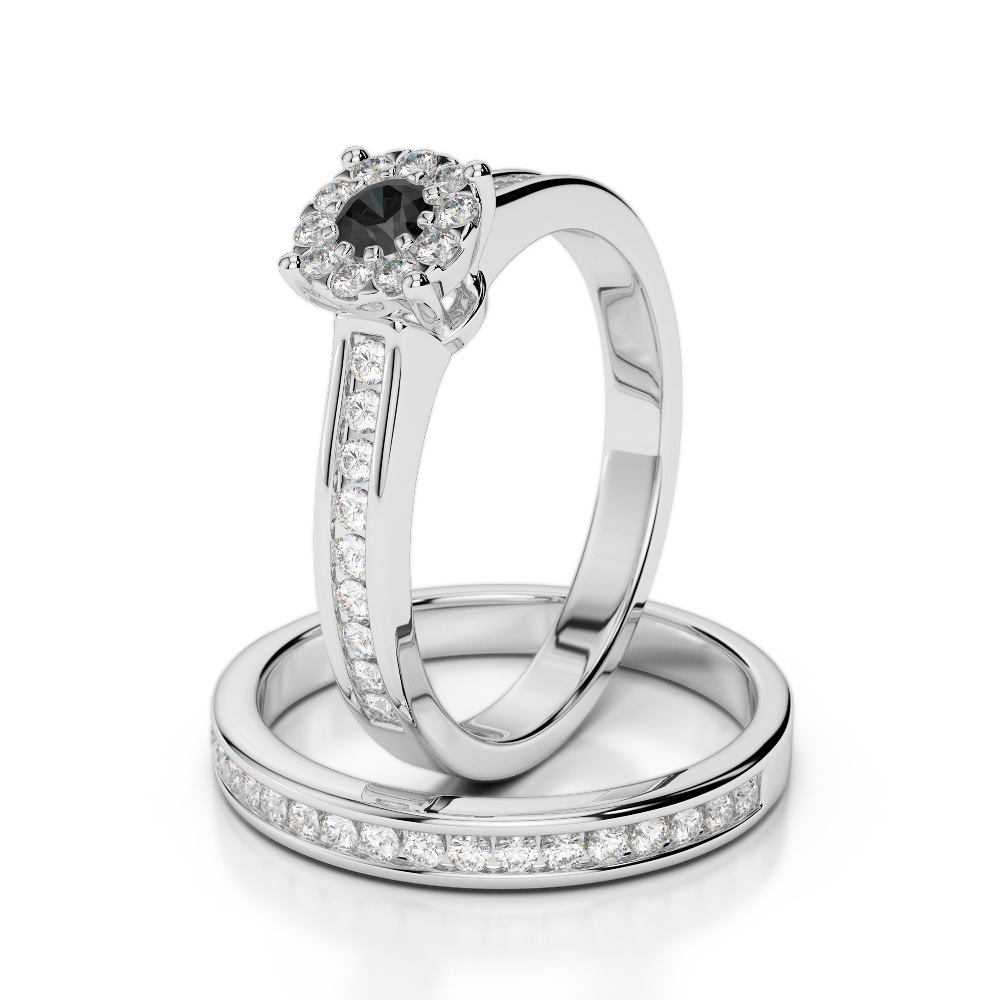 Channel and Prong Set Black Diamond Bridal Set Ring 0323