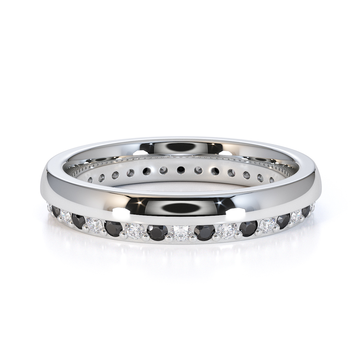 Channel and Prong Set Black Diamond Full Eternity Ring 0440