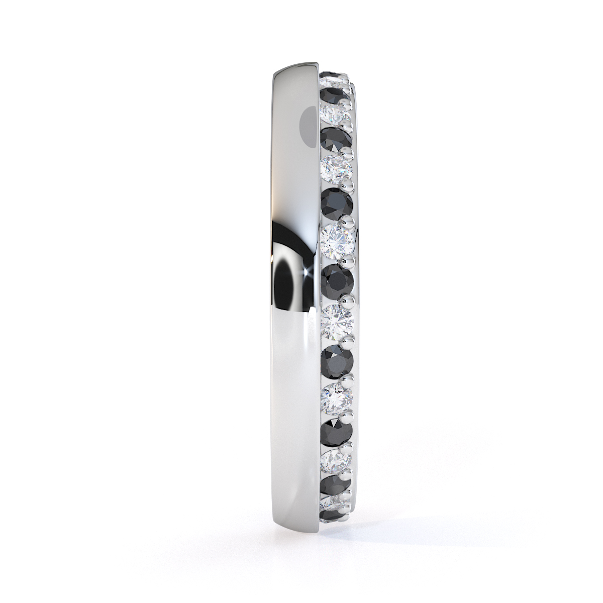 This black diamond and diamond eternity ring is a stunning piece of jewellery, exuding elegance and sophistication. It features alternating black diamonds and diamonds set in prong and channel settings, creating a beautiful contrast between the vibrant sapphires and sparkling diamonds. Perfect for special occasions or everyday wear, this eternity ring adds glamour to any outfit.