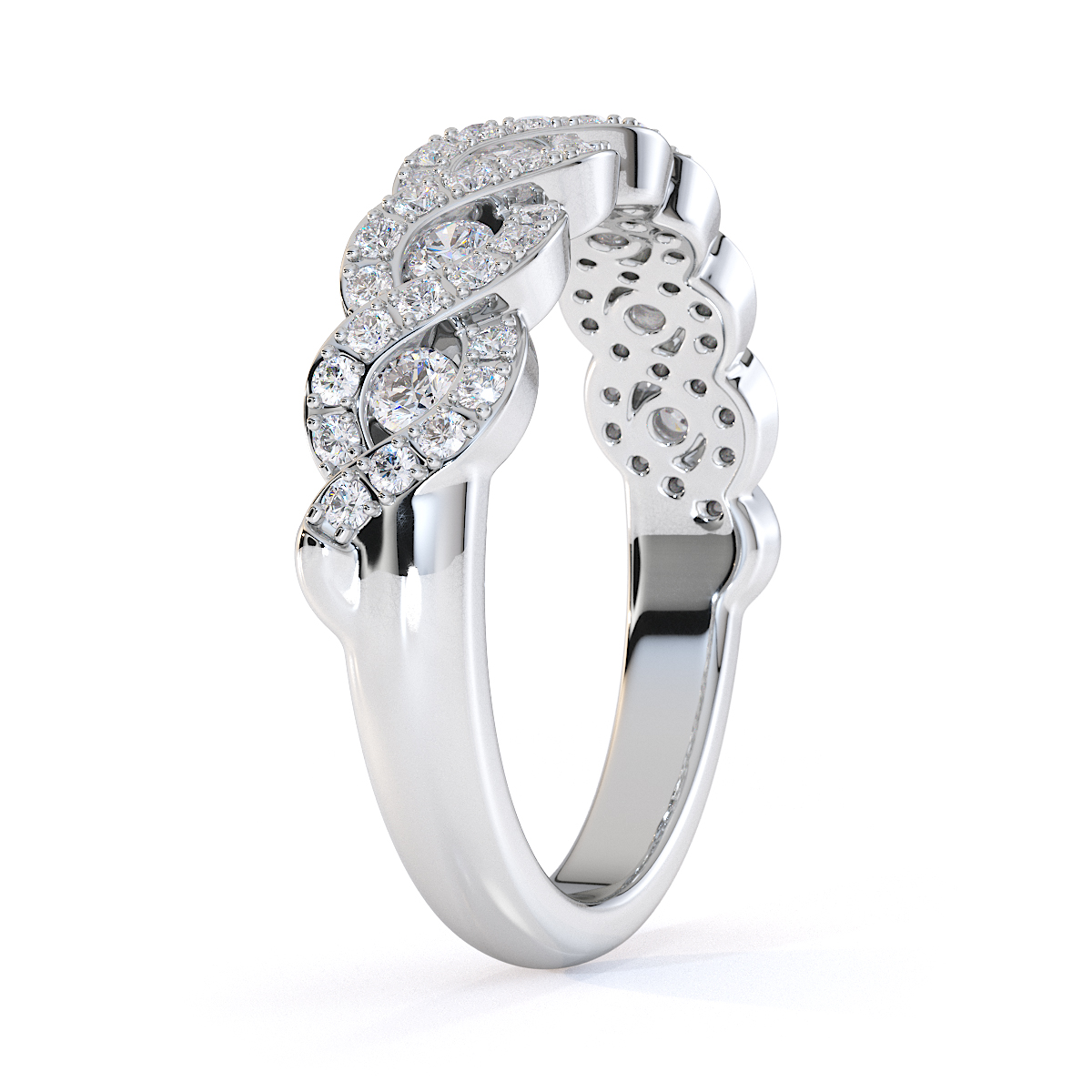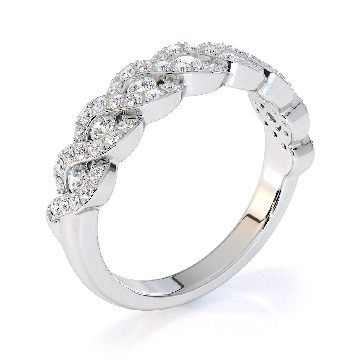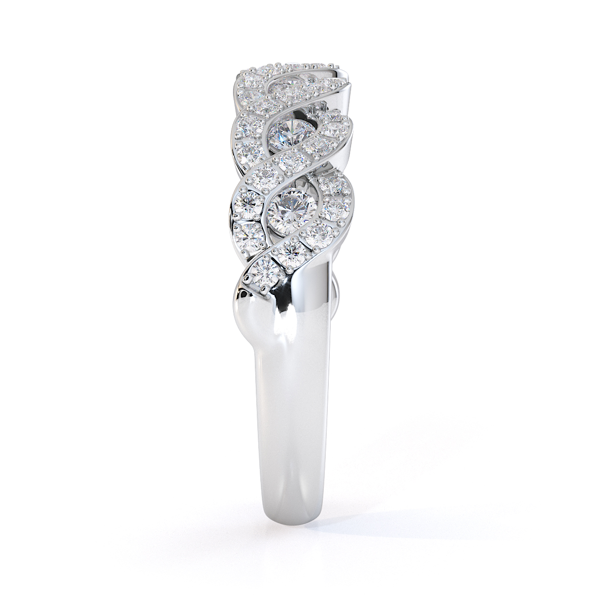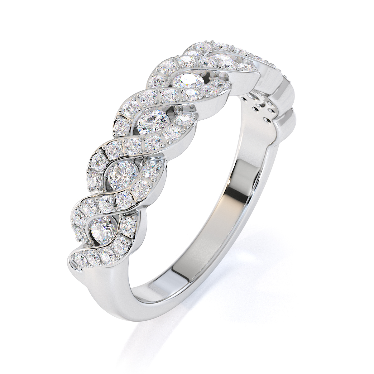 This half eternity ring features diamond, symbolizing elegance and sophistication. Crafted with precision, it features a prong and channel setting for a secure hold, making it a timeless piece that combines classic design with modernity, a must-have for any jewellery collection.