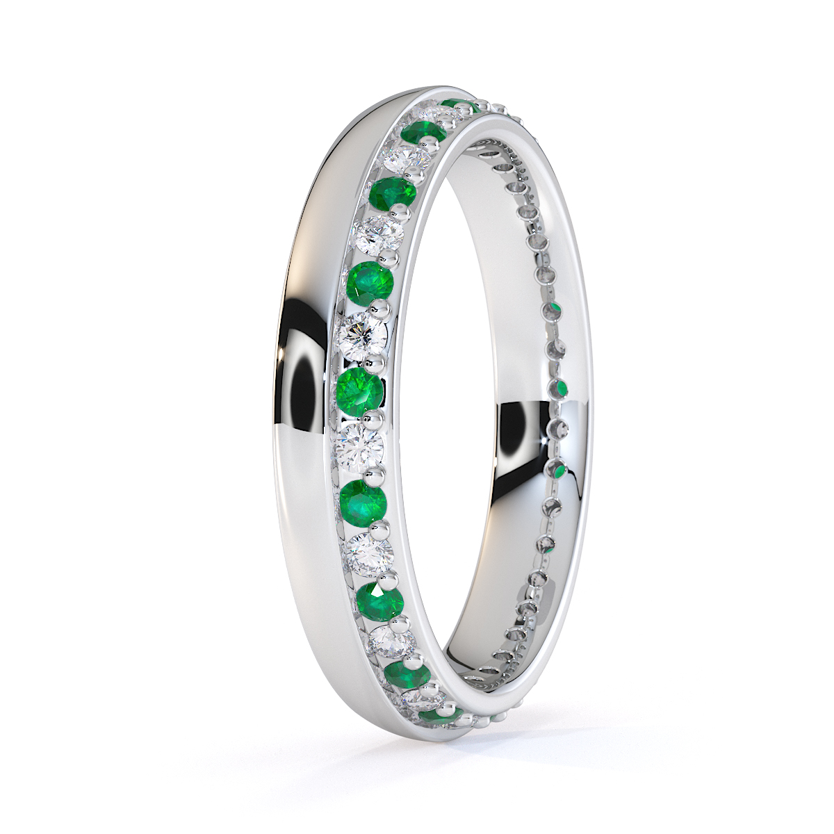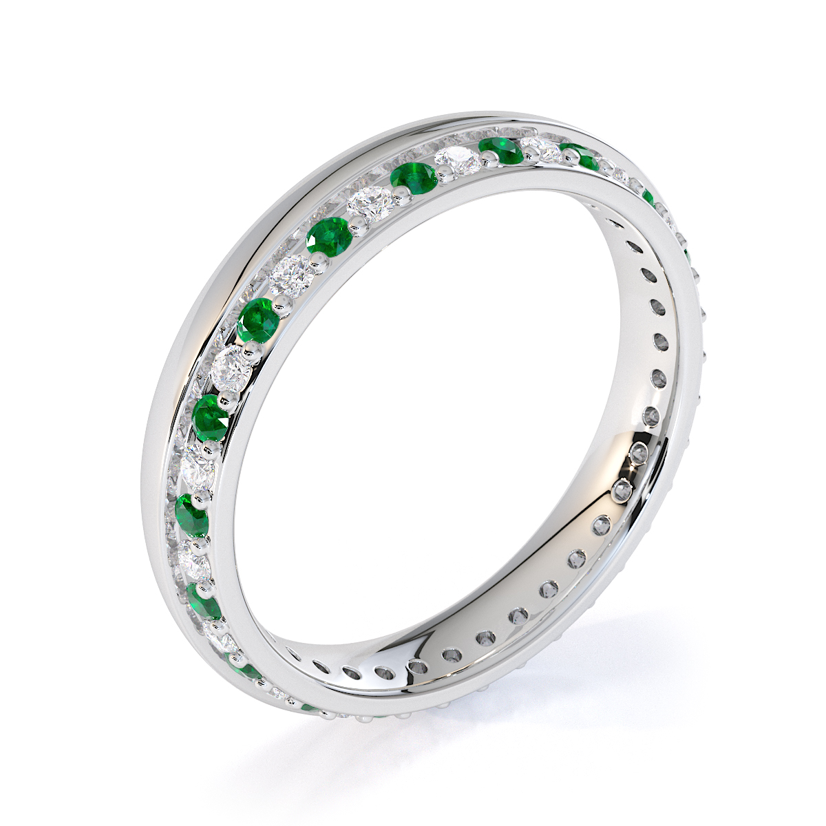 Channel and Prong Set Emerald Full Eternity Ring With Diamond 0440
