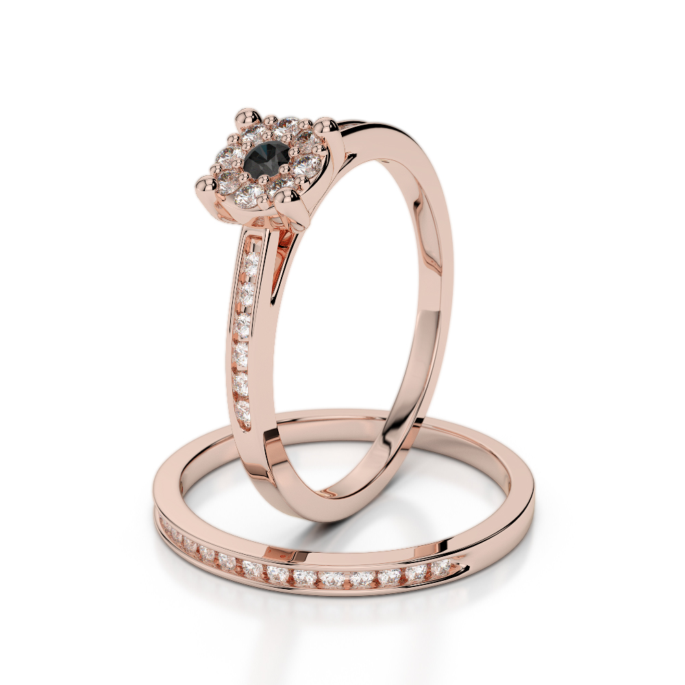 Channel & Prong Set Black Diamond Bridal Set Ring 0291