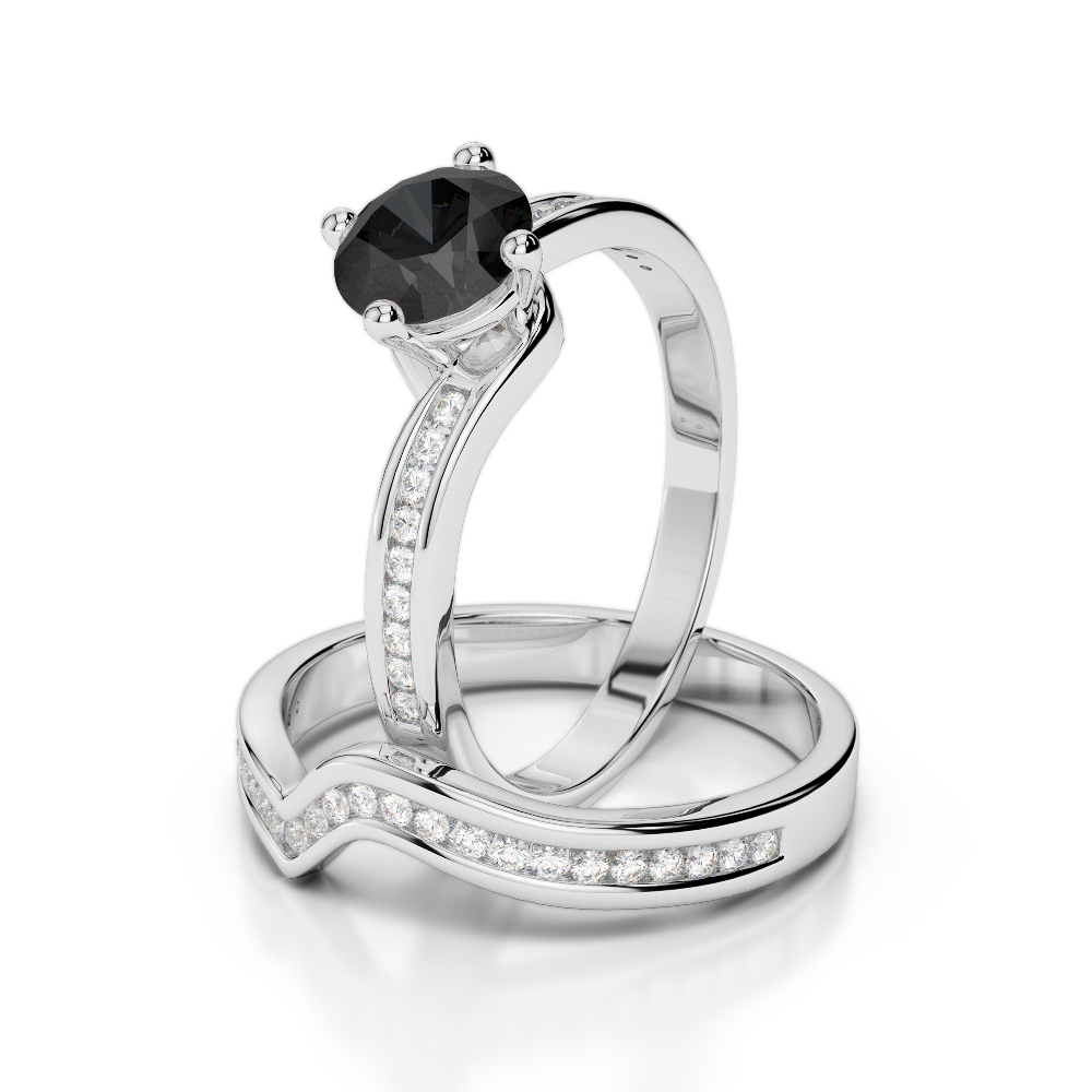 Our black diamond bridal set ring with Prong and Channel Setting features beautiful wedding rings with diamonds on the side, crafted with precision and attention to detail. This timeless piece symbolizes eternal love and commitment, with the prong and channel setting ensuring secure diamonds placement. Perfect for celebrating your special day, this bridal set ring is a true testament to the beauty of everlasting love.