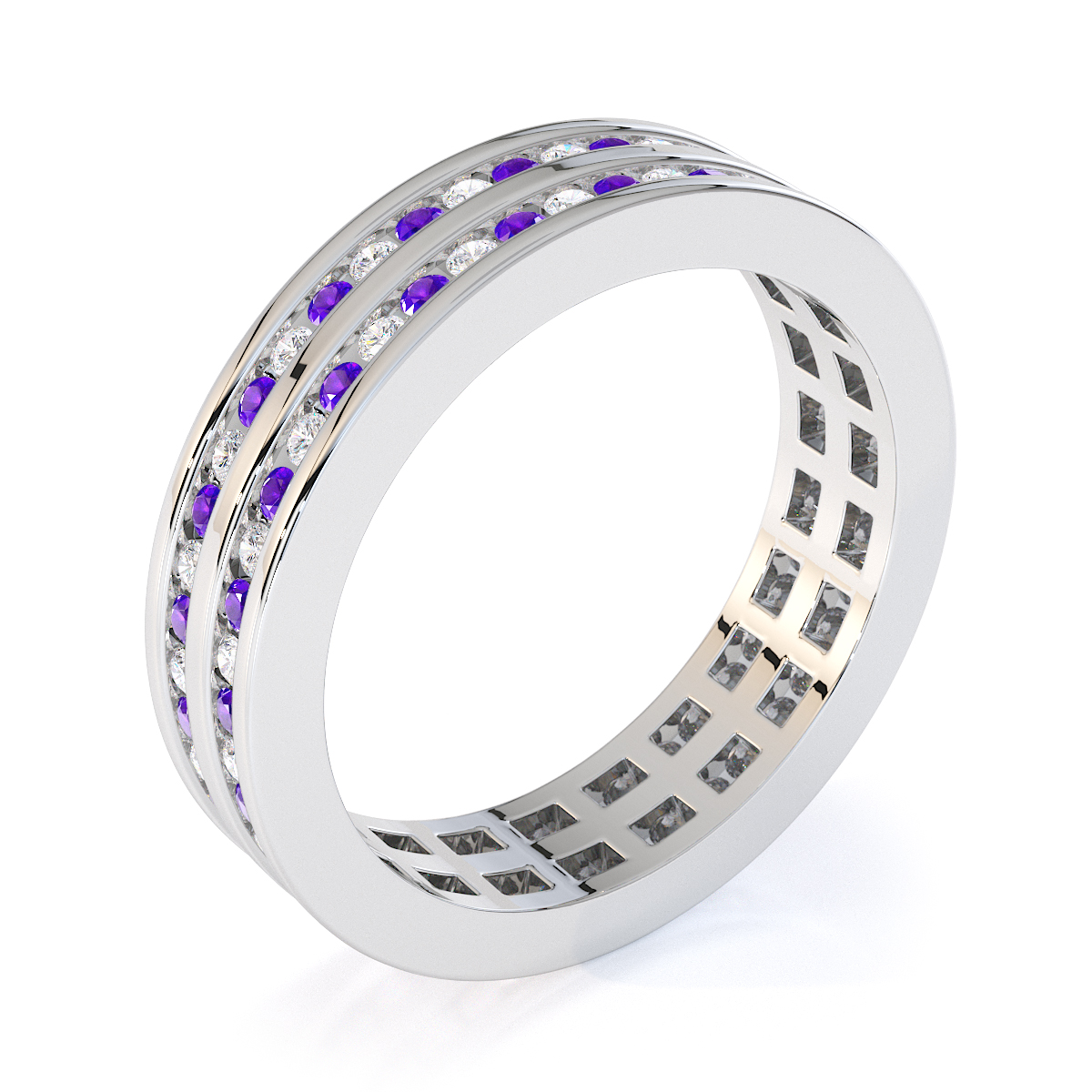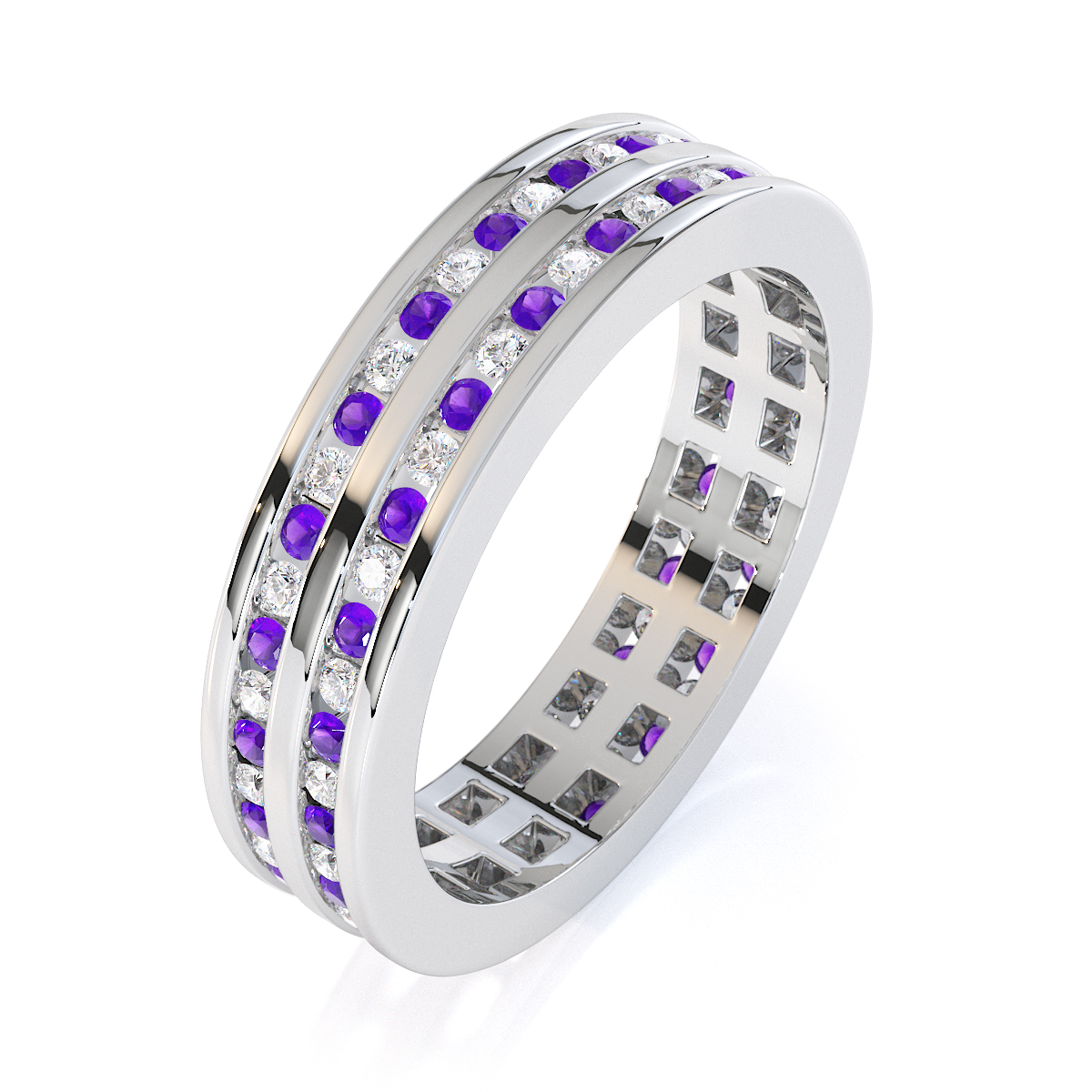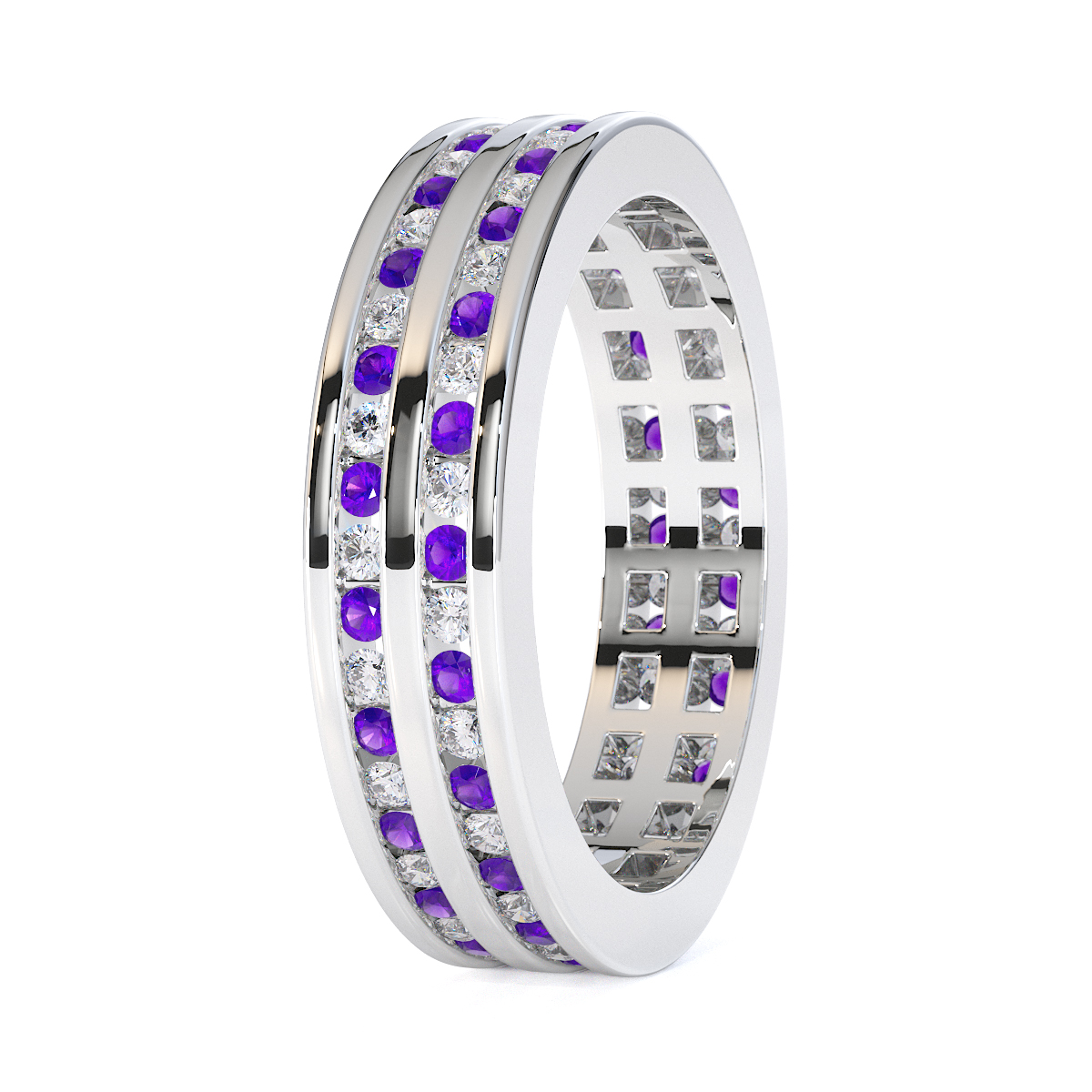 Channel Set Amethyst & Diamond Full Eternity Ring 0426