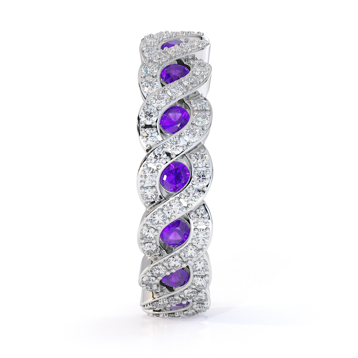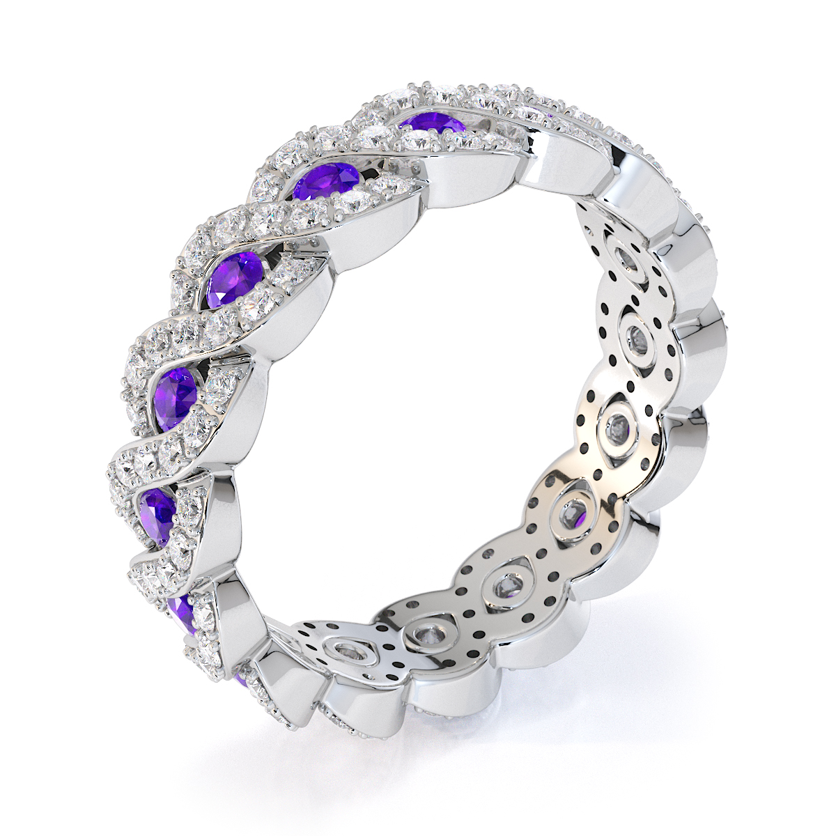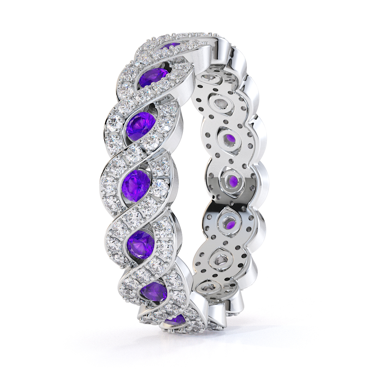 Channel Set Amethyst & Prong Set Diamond Full Eternity Ring 0456