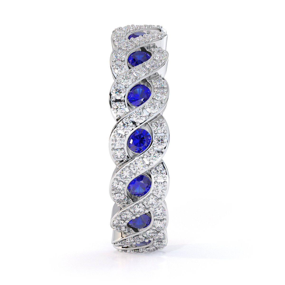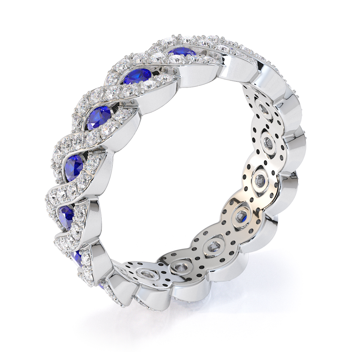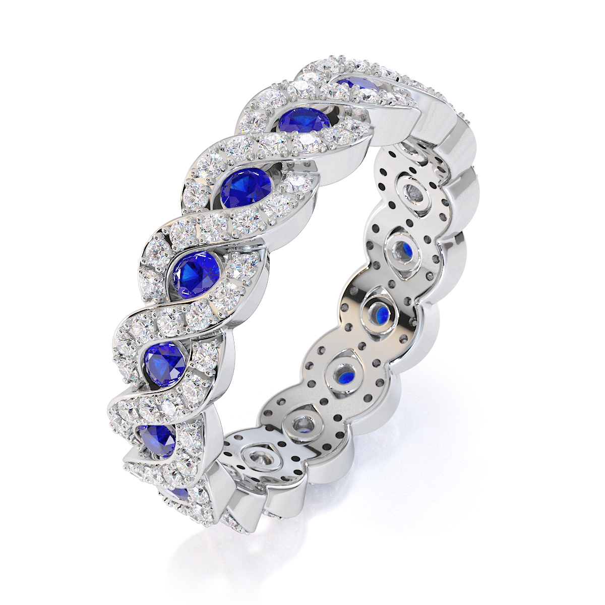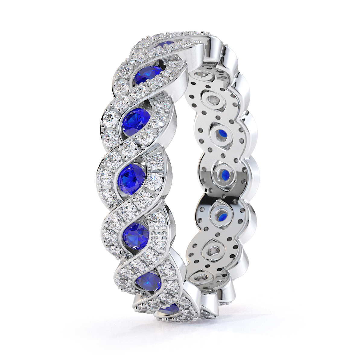 Channel Set Blue Sapphire & Prong Set Diamond Full Eternity Ring 0456